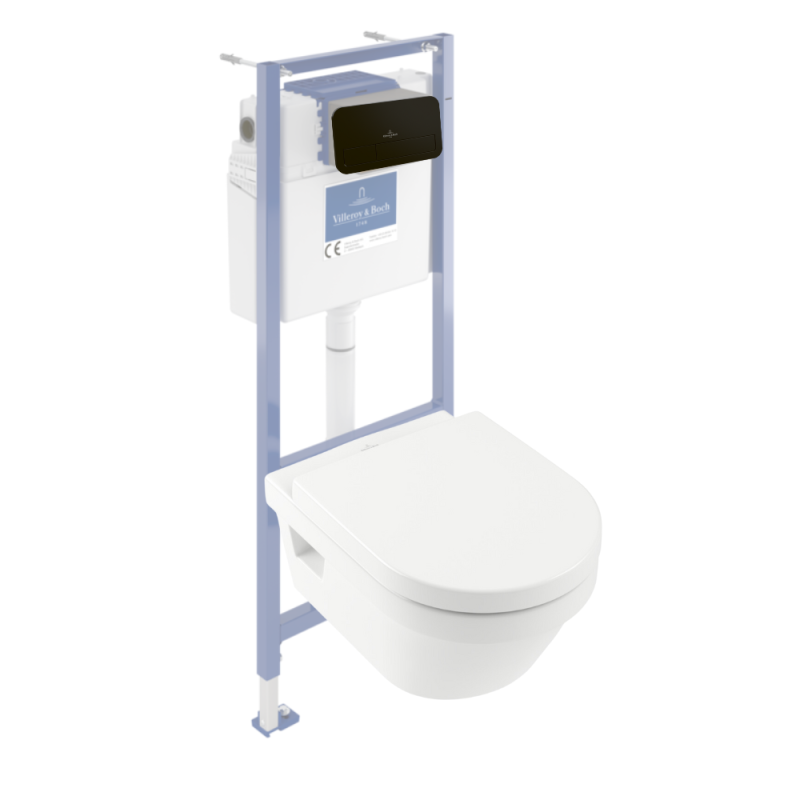Libellé Pack WC sans bride VILLEROY ET BOCH Architectura avec abattant + bâti-support sol et mur Viconnect PRO + plaque noir