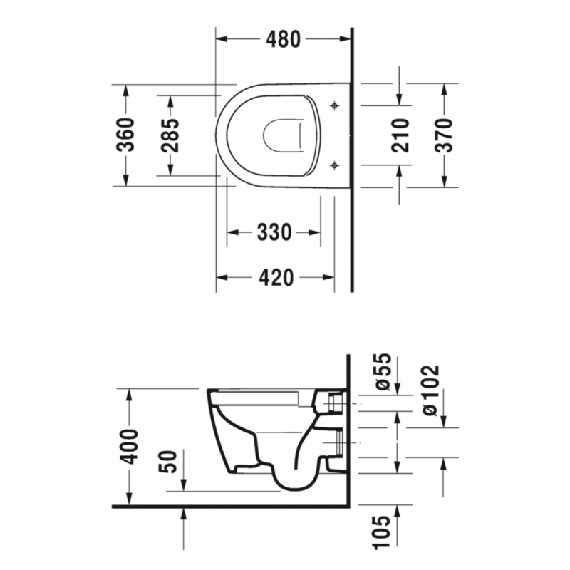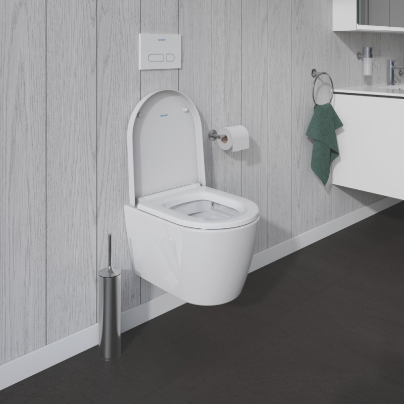 Technologie Rimless® de Duravit: Grâce à la technologie Rimless®, ce WC présente un design sans bride avec un écoulement d'eau innovant, éliminant ainsi toute possibilité d'accumulation de saleté ou de bactéries sous le rebord de la chasse d'eau, garantissant une hygiène optimale.