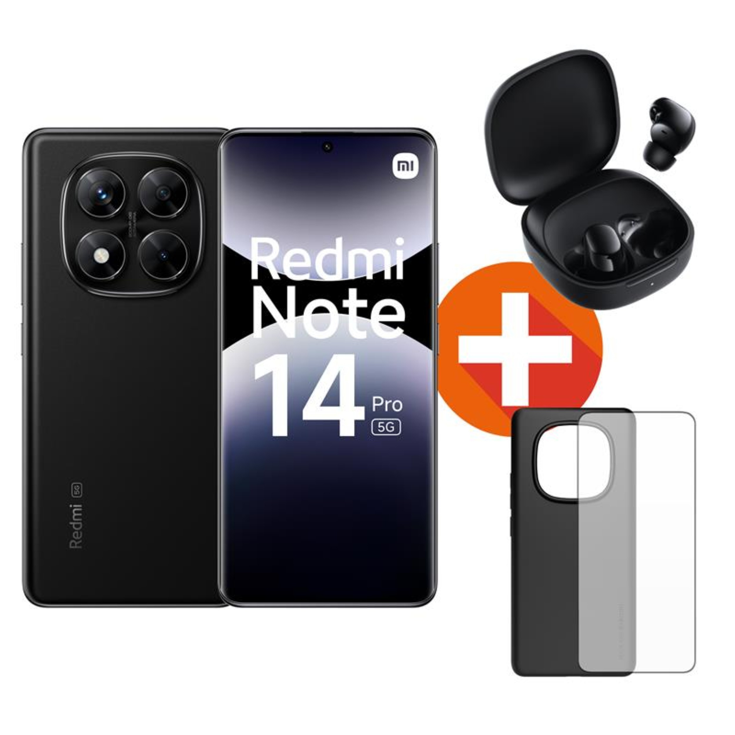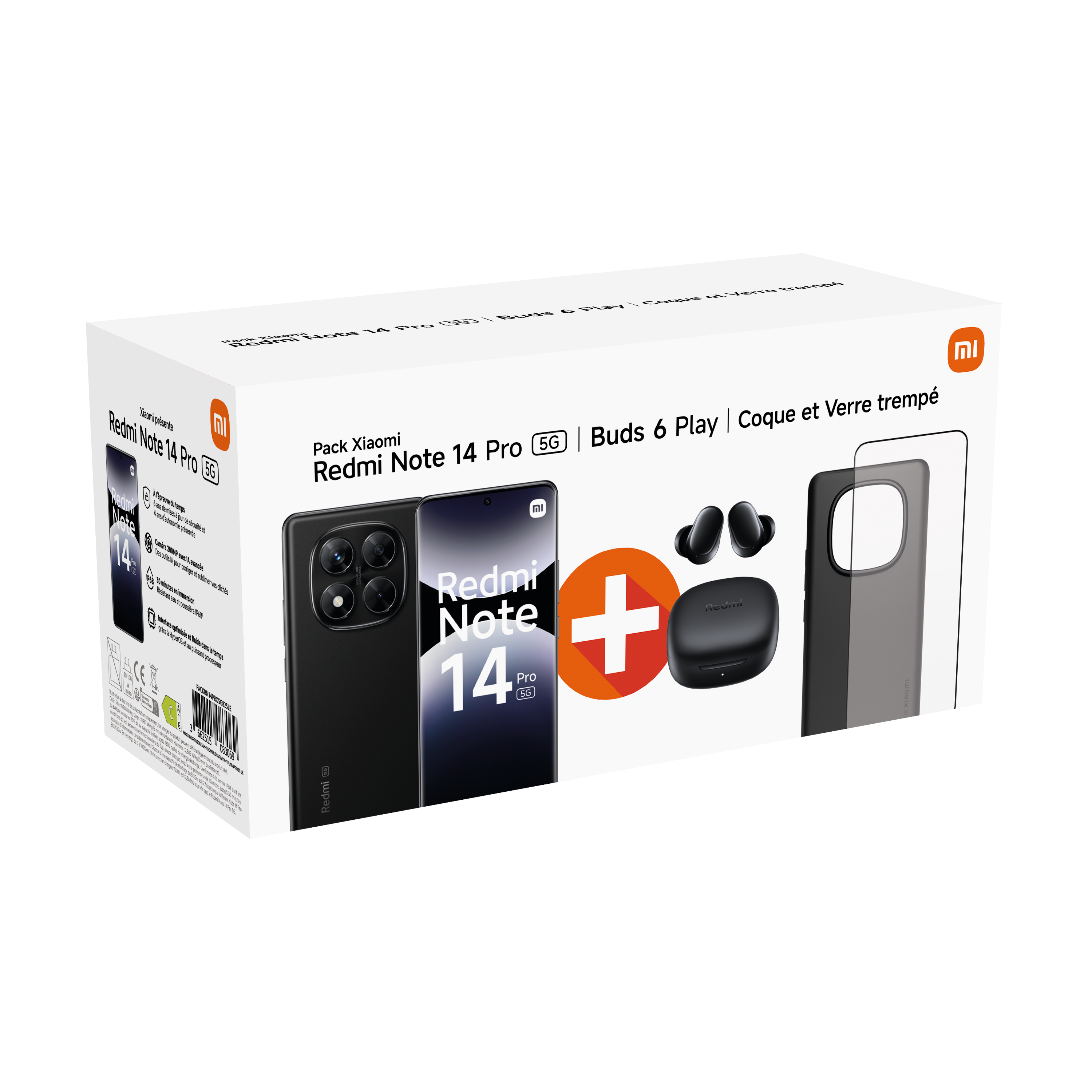 Pack Xiaomi Redmi Note 14 Pro 5G 256Go Midnight Noir avec  Coque & Verre trempé + Redmi Buds 6 Play Noir