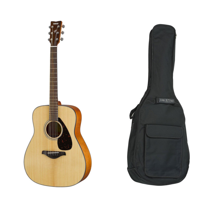 Modèle incontournable de la série de guitares acoustiques Yamaha FG. Les caractéristiques d'un grande guitare à un prix très accessible : Table en épicéa massive pour offrir projection et sonorité acoustique authentique, nouveaux barrages scallopés et finition irréprochable. L'instrument idéal pour ceux qui veulent commencer la guitare en toute sérénité. Ici en pack avec une housse Tobago GB20F ou équivalent - Table: Epicéa Massif - Dos&Eclisses: Nato/Okume - Manche: Nato - Touche: Palissandre - Largeur au sillet: 43mm - Diapason: 650mm - Mécaniques: Yamaha Chrome