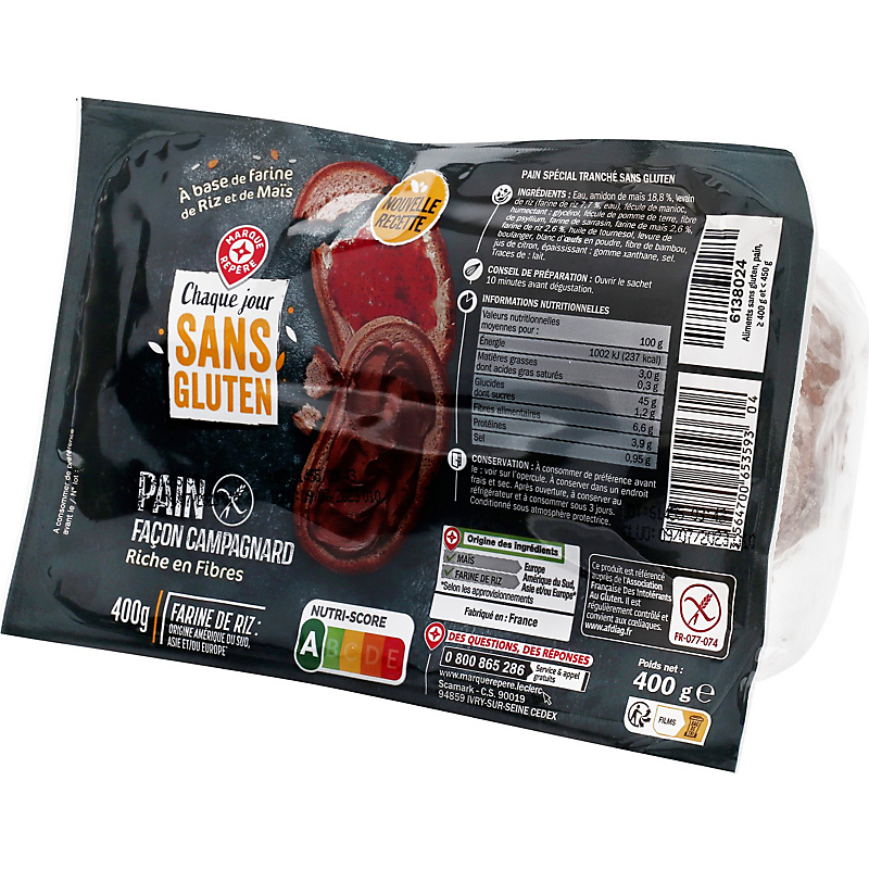 Il est rare de trouver du pain sans gluten qui ressemble à du vrai pain et non du pain de mie ! Je le consomme grillé, il est excellent. Merci Leclerc