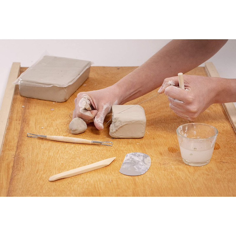 Argile naturelle sans cuisson pour modelage. Idéale pour ceux qui souhaitent faire du modelage avec des détails fins. L'avantage de l'argile sans cuisson est qu'elle s'auto durcit et devient très solide et durable. Attendez 4 ou 5 jours pour un obtenir séchage complet, vous pourrez ensuite la peindre, la vernir, la tailler, ou la perforer. De plus, en appliquant un imperméabilisant, vous pourrez la rendre étanche. Après séchage, l'argile ne craquelle pas et ne fait pas de fissures. Elle se nettoie facilement à l'eau, sur la peau ou les vêtements. Format : 1,5 kg.