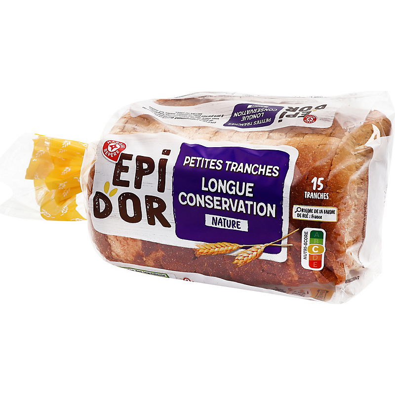 Ingrédients : Farine de blé 69 %, eau, sucre, levure, huile de colza, arôme naturel(contient alcool), sel, émulsifiant : E471, conservateur : E282, gluten de blé, agent de traitement de la farine : acide ascorbique, levure désactivée.