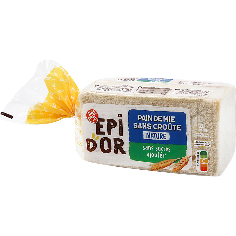 Pain de mie sans croûte tranché, sans sucre ajouté* *Contient des sucres naturellement présents. EPI D'OR
