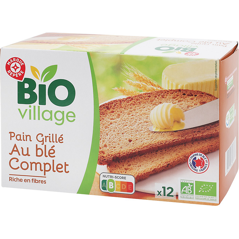 Pain grillé au blé complet - Produit issu de l'agriculture biologique BIO VILLAGE
