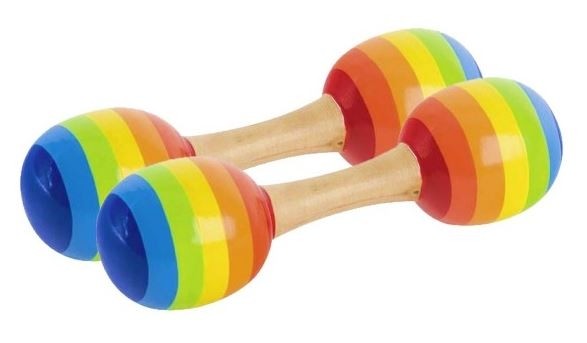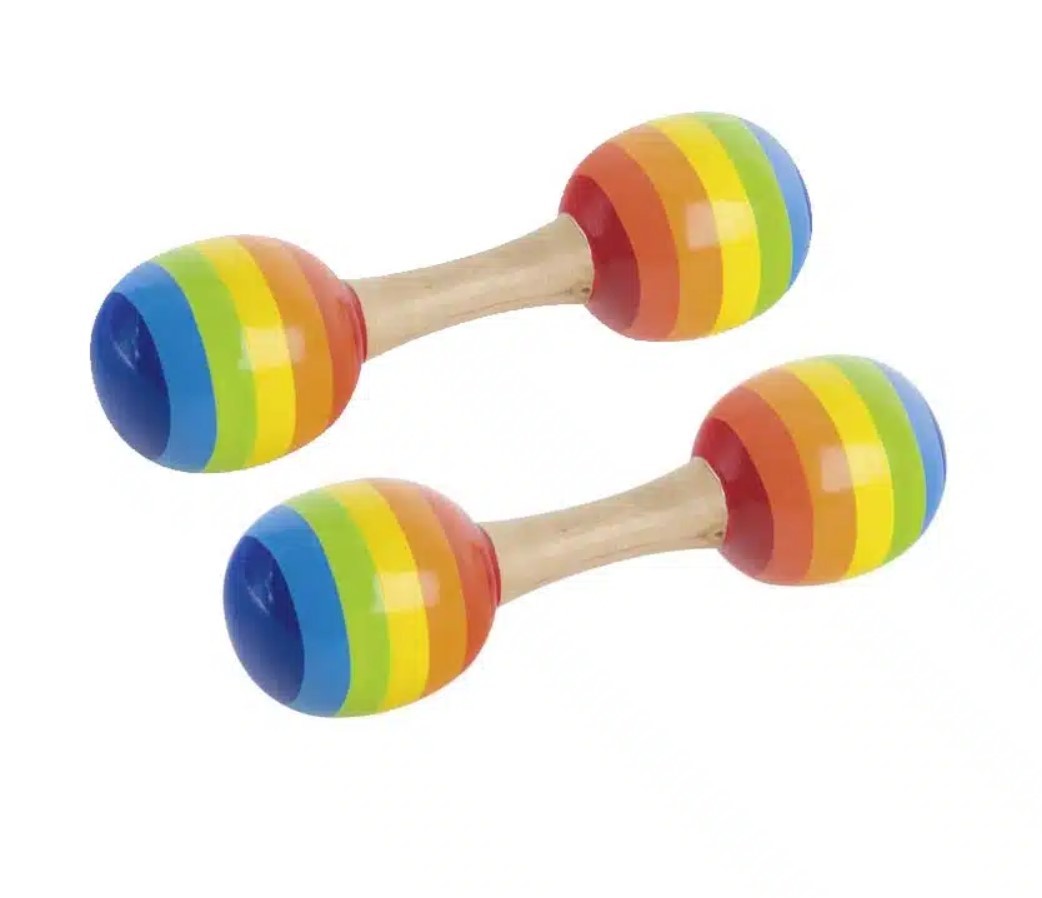 Maracas doubles en bois aux couleurs de l'arc en ciel.