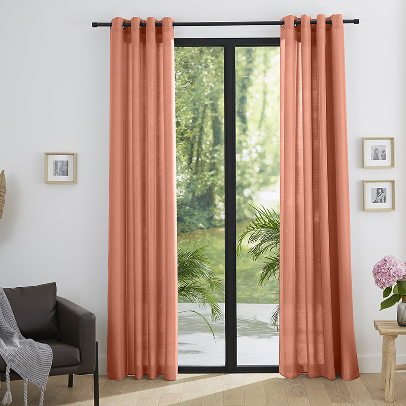 Paire de Doubles Rideaux à œillets "effet lin" Corail 140 x 260 cm Moonlight deco