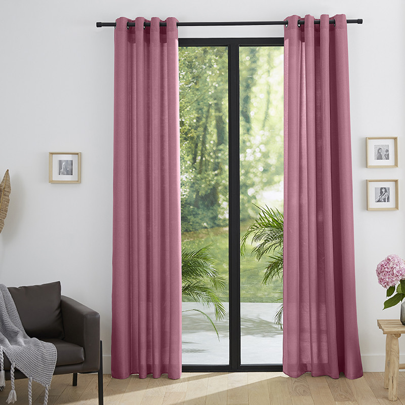 Paire de Doubles Rideaux à œillets "effet lin" 140 x 260 cm Rose poudré Moonlight deco