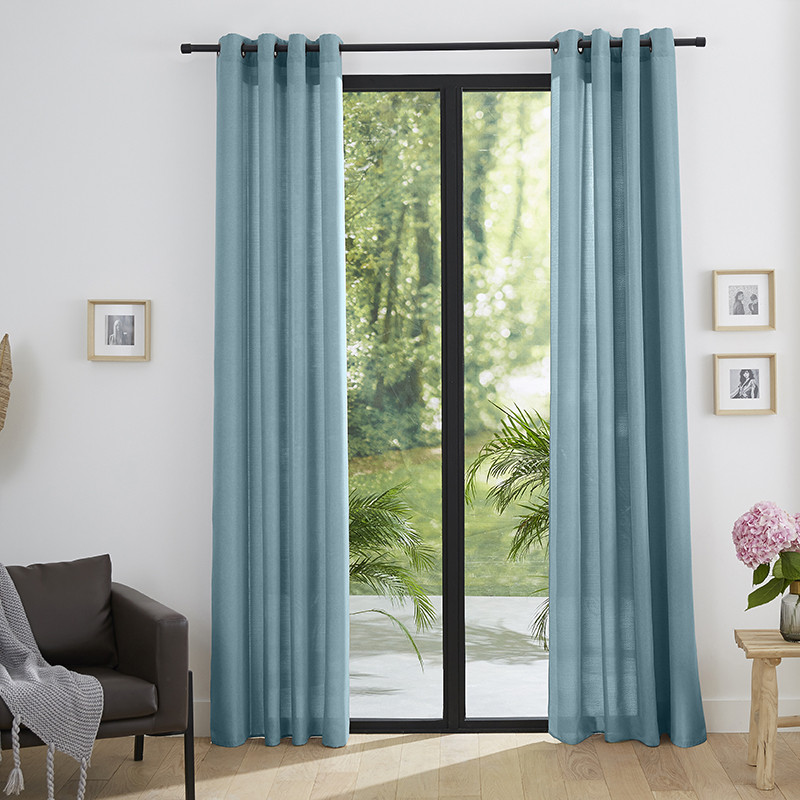 Paire de Doubles Rideaux à œillets "effet lin" 140 x 260 cm Turquoise Moonlight deco
