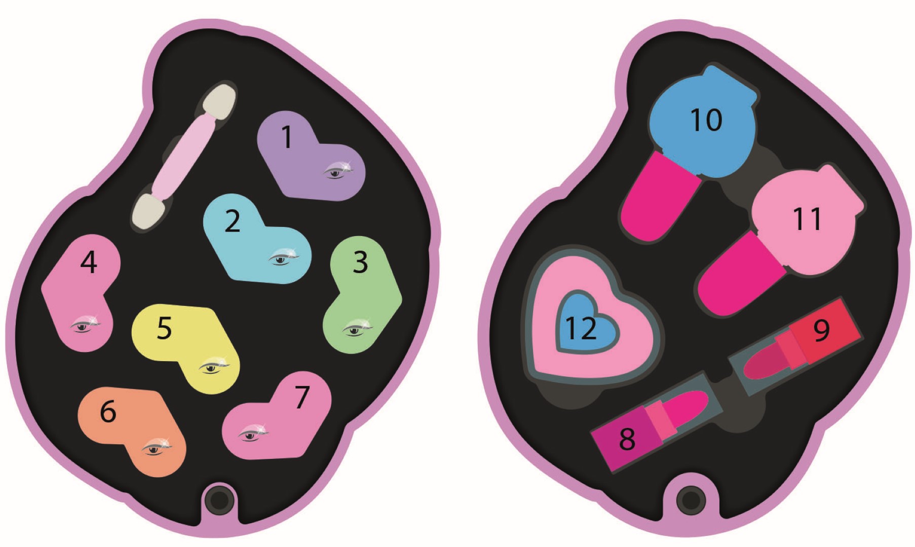 • Un coffret de maquillage avec 2 palettes remplies de fards à paupières, de rouges à lèvres et de vernis à ongles. • Pour réaliser un maquillage magique, il y a également 3 vernis à ongles et 3 rouges à lèvres en plus pour remplacer ceux contenus dans la palette pour encore plus de plaisir ! • Une expérience de jeu complète et sure. Le maquillage a été testé pour garantir une sécurité optimale. Les petites filles peuvent s'amuser en suivant des tutoriels en ligne, ou en suivant les conseils de leurs amies ou de leur maman.