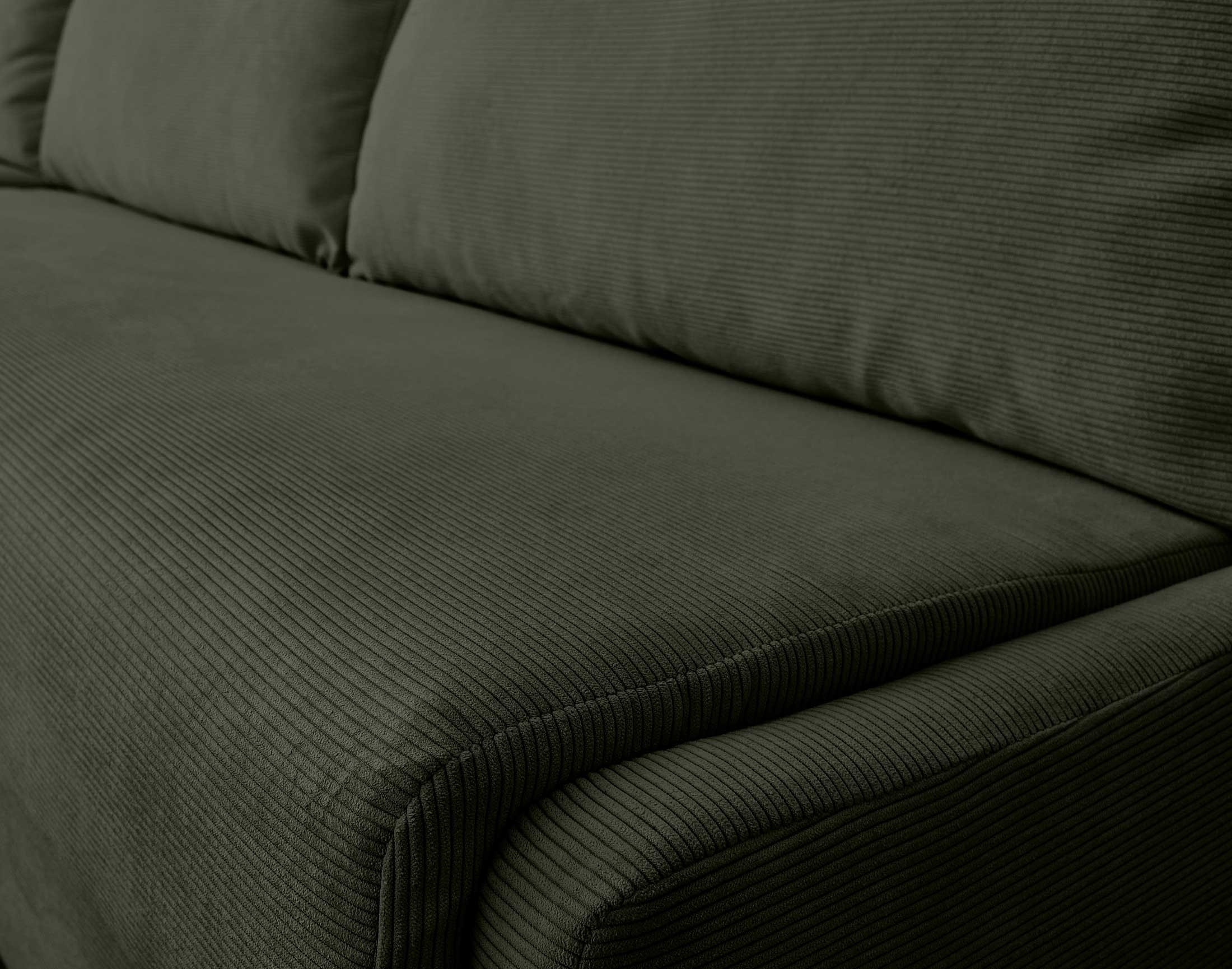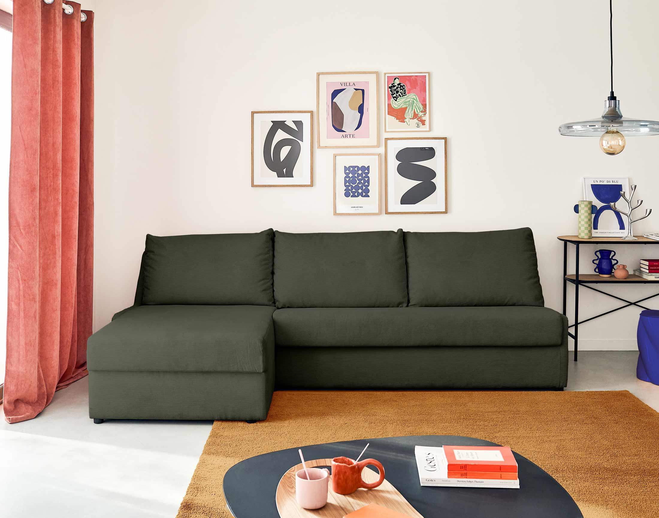 A la fois design et fonctionnel, le canapé d’angle 4 places Palmira s’accordera aussi bien avec les petits comme les plus grands espaces. Qu’il soit positionné le long d’un mur ou en valeur au centre de votre salon, ce canapé-lit au design sans accoudoirs et au revêtement en velours côtelé apportera du charme à votre intérieur.