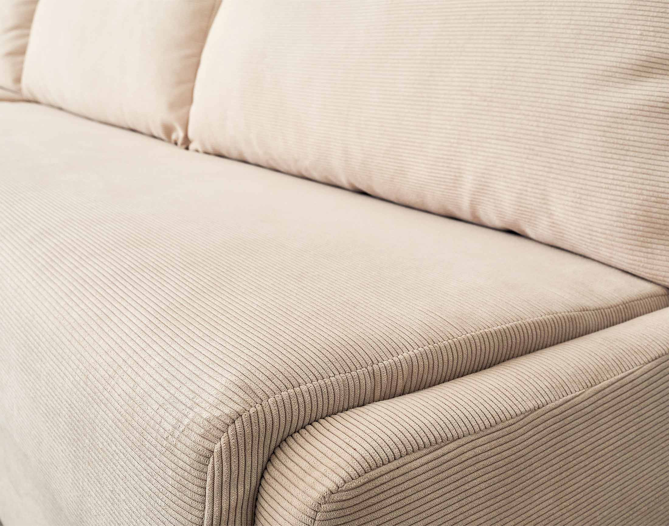 A la fois design et fonctionnel, le canapé d’angle 4 places Palmira s’accordera aussi bien avec les petits comme les plus grands espaces. Qu’il soit positionné le long d’un mur ou en valeur au centre de votre salon, ce canapé-lit au design sans accoudoirs et au revêtement en velours côtelé apportera du charme à votre intérieur.
