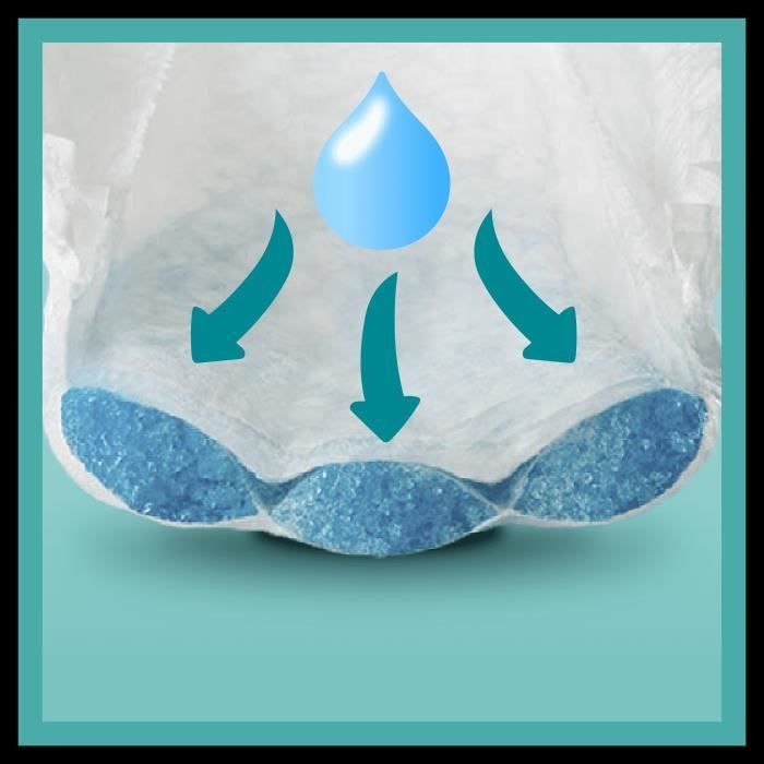 Pendant qu'il dort, votre bébé peut bouger jusqu'a deux fois plus que vous, ce qui peut entrainer des fuites. Les couches Pampers Baby-Dry offrent jusqu'a 12 heures de protection intégrale contre les fuites grâce a leur triple systeme de protection unique qui absorbe l'humidité instantanément et aide a éviter les fuites au niveau de la taille et des jambes. 1) Leur coeur super absorbant absorbe l'humidité instantanément, 2) leur double barriere anti-fuites aide a éviter les fuites au niveau des jambes, 3) leurs côtés extensibles s'adaptent confortablement a la taille de votre bébé afin de garantir une bonne protection contre les fuites, de jour comme de nuit, quels que soient ses mouvements. La sécurité de votre bébé est la priorité de Pampers. Les couches Pampers Baby-Dry sont 100 % sûres : elles sont testées cliniquement, dermatologiquement et certifiées par le label indépendant oeKO-TEX. Vous souhaitez en savoir plus sur la composition des couches Pampers? Rendez-vous sur pampers.fr