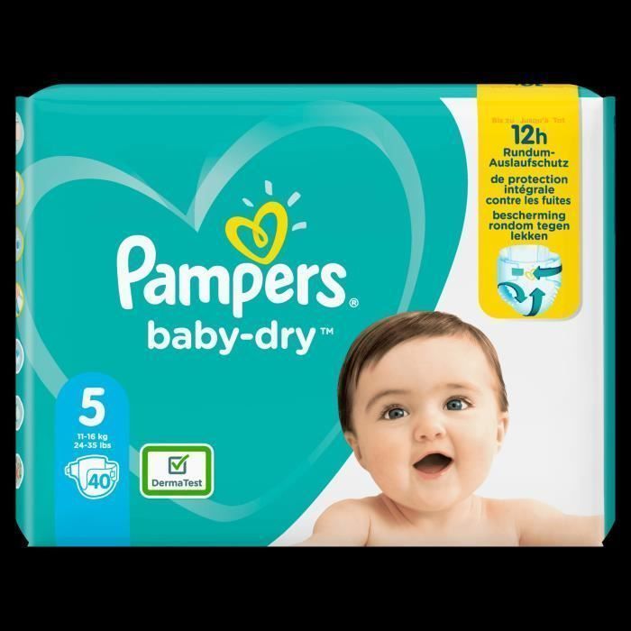 | Libellé | Pampers Baby-Dry Taille 5, 40 Couches |
