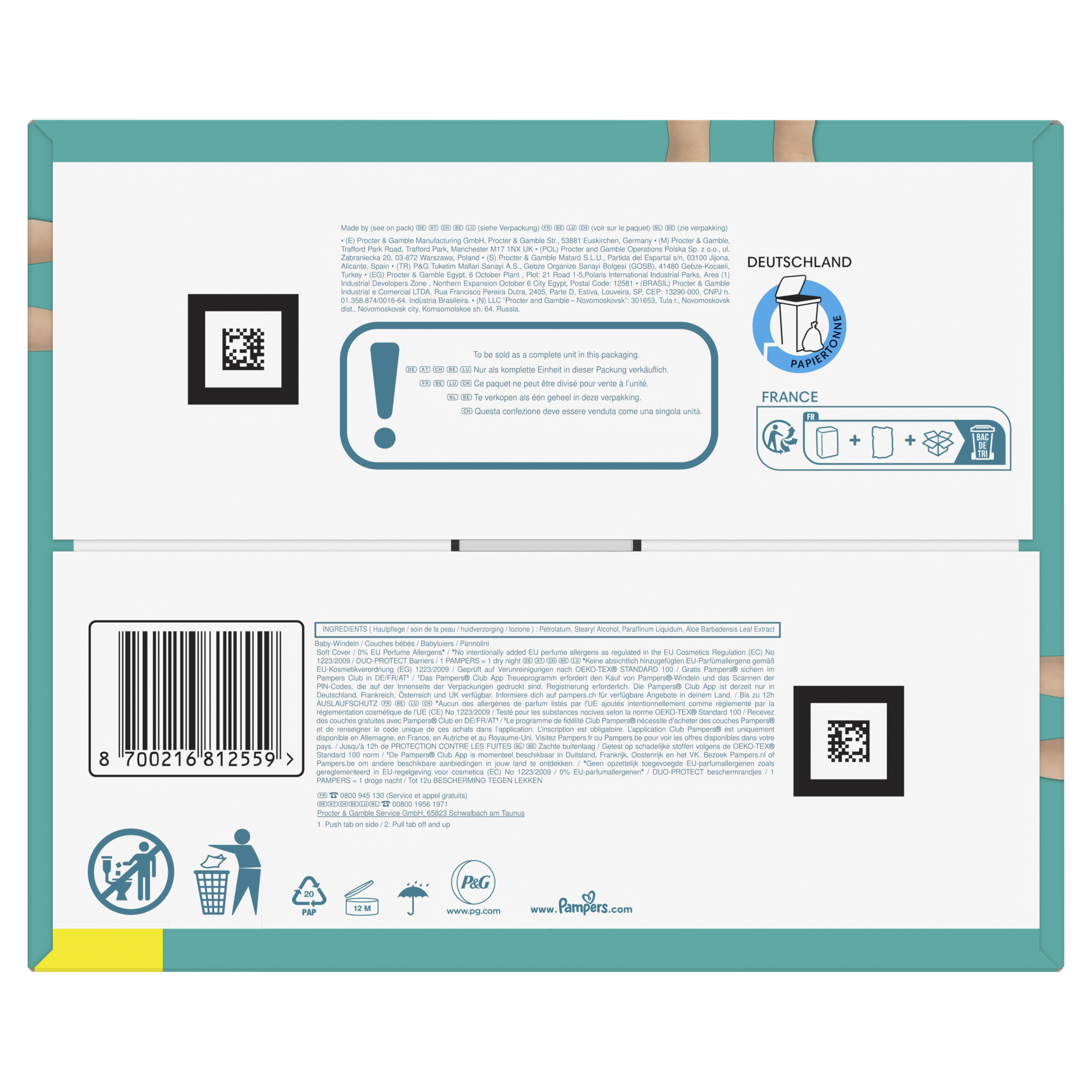 Découvrez les couches Pampers Baby-Dry, spécialement conçues pour suivre les mouvements de votre bébé, pour une nuit confortable et jusqu'à 100% sans fuites. Grâce à leur absorption améliorée, ces couches absorbent et capturent rapidement l'humidité, gardant votre bébé bien au sec pendant de longues périodes. Fabriquées avec des matériaux de haute qualité, nos couches Baby-Dry enveloppent la peau de votre bébé en douceur. Chez Pampers, la sécurité de votre bébé est notre priorité absolue. C'est pourquoi nos couches Baby-Dry sont soumises à des tests dermatologiques rigoureux et ne contiennent aucun des allergènes de parfum listés par l'UE, comme règlementé par la réglementation cosmétique n° 1223/2009 de l'UE. Nous détenons également la certification Standard 100 par OEKO-TEX, vous garantissant leur qualité et leur sécurité. Tout cela pour dire adieu aux fuites et bonjour à des nuits de sommeil confortables. Vous souhaitez en savoir plus sur la composition de nos produits ? Visitez pampers.fr