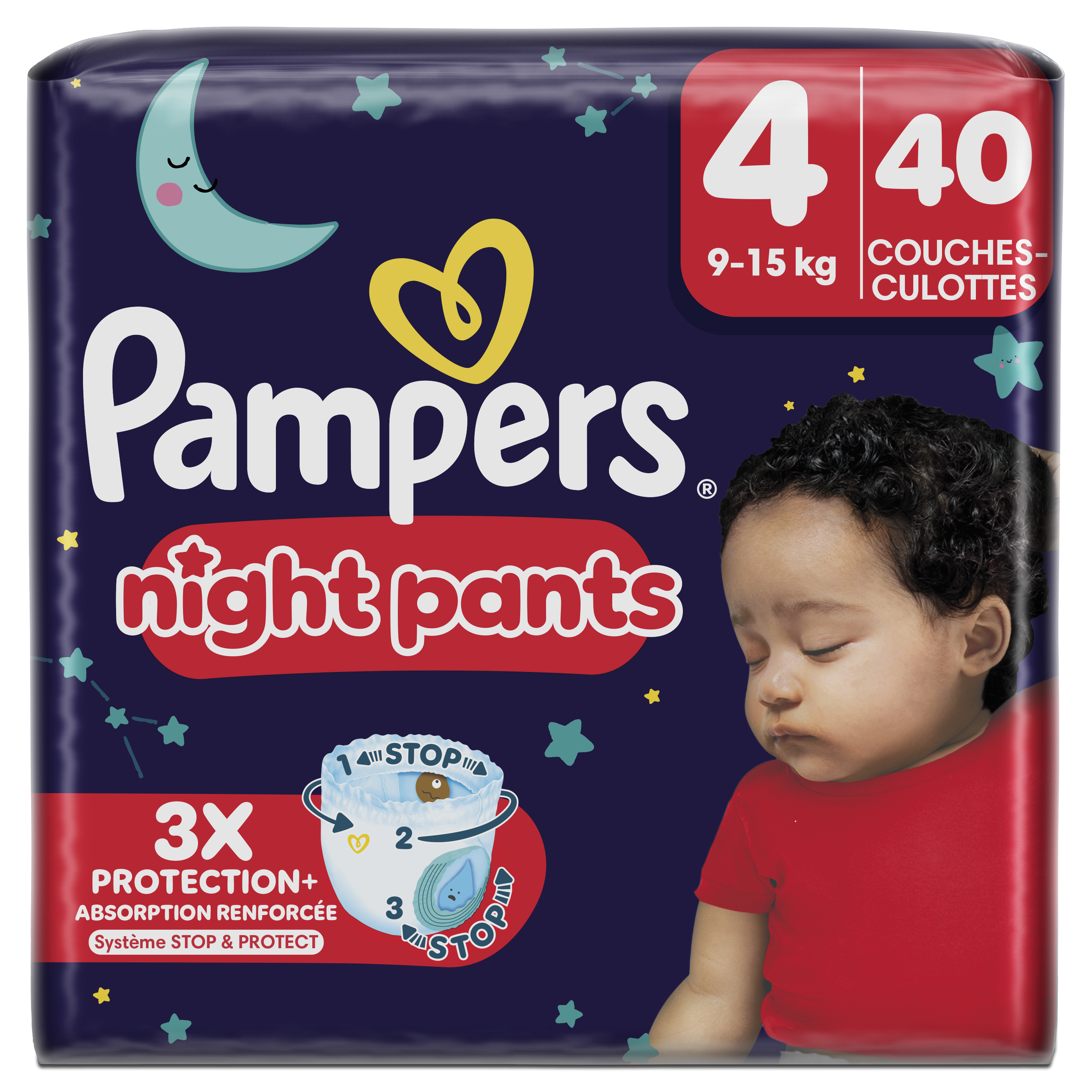 | Libellé | Pampers Night Pants Taille 4 40 Couches-Culottes 9kg-15kg |