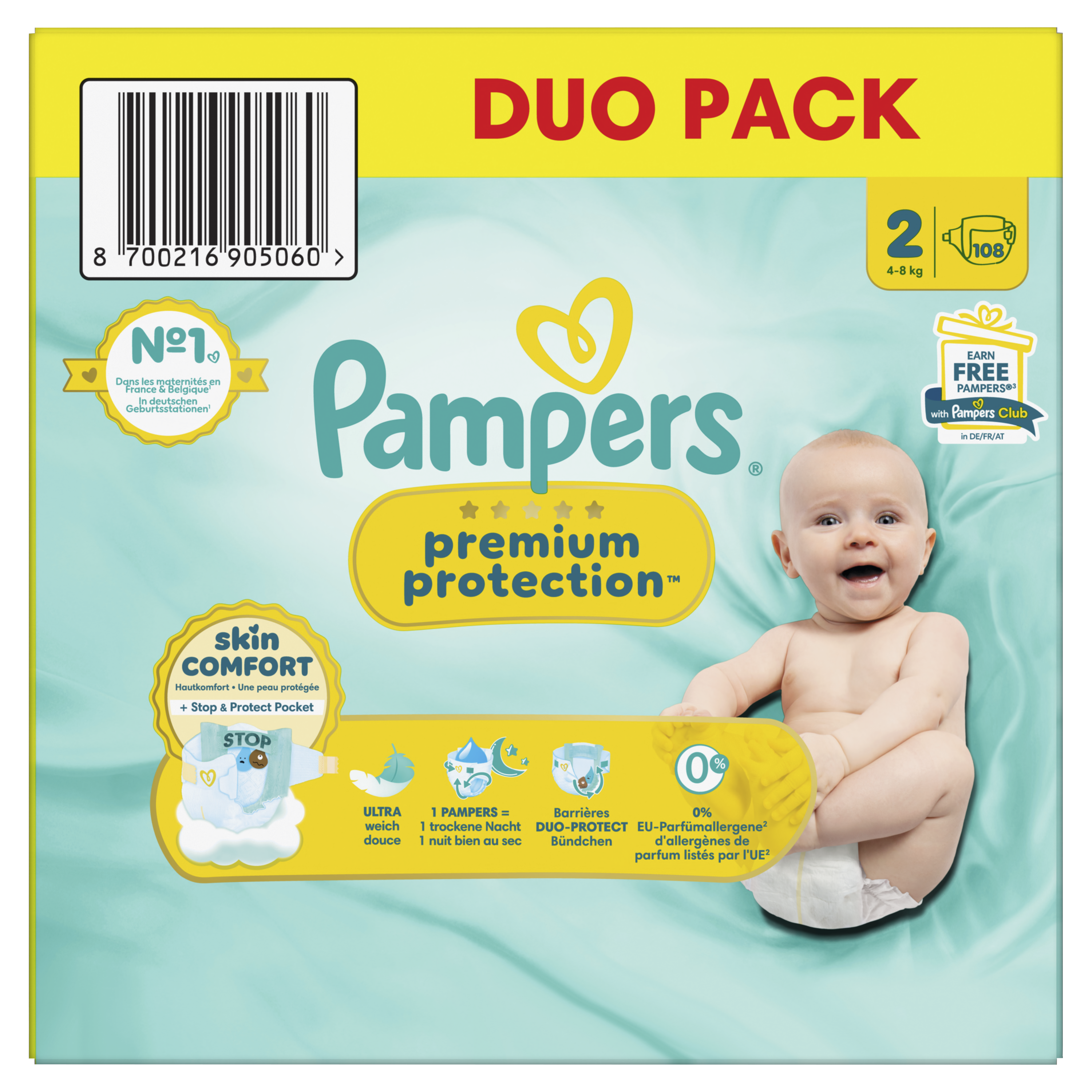 Pampers Premium Protection Taille 2 108 Couches 4kg-8kg