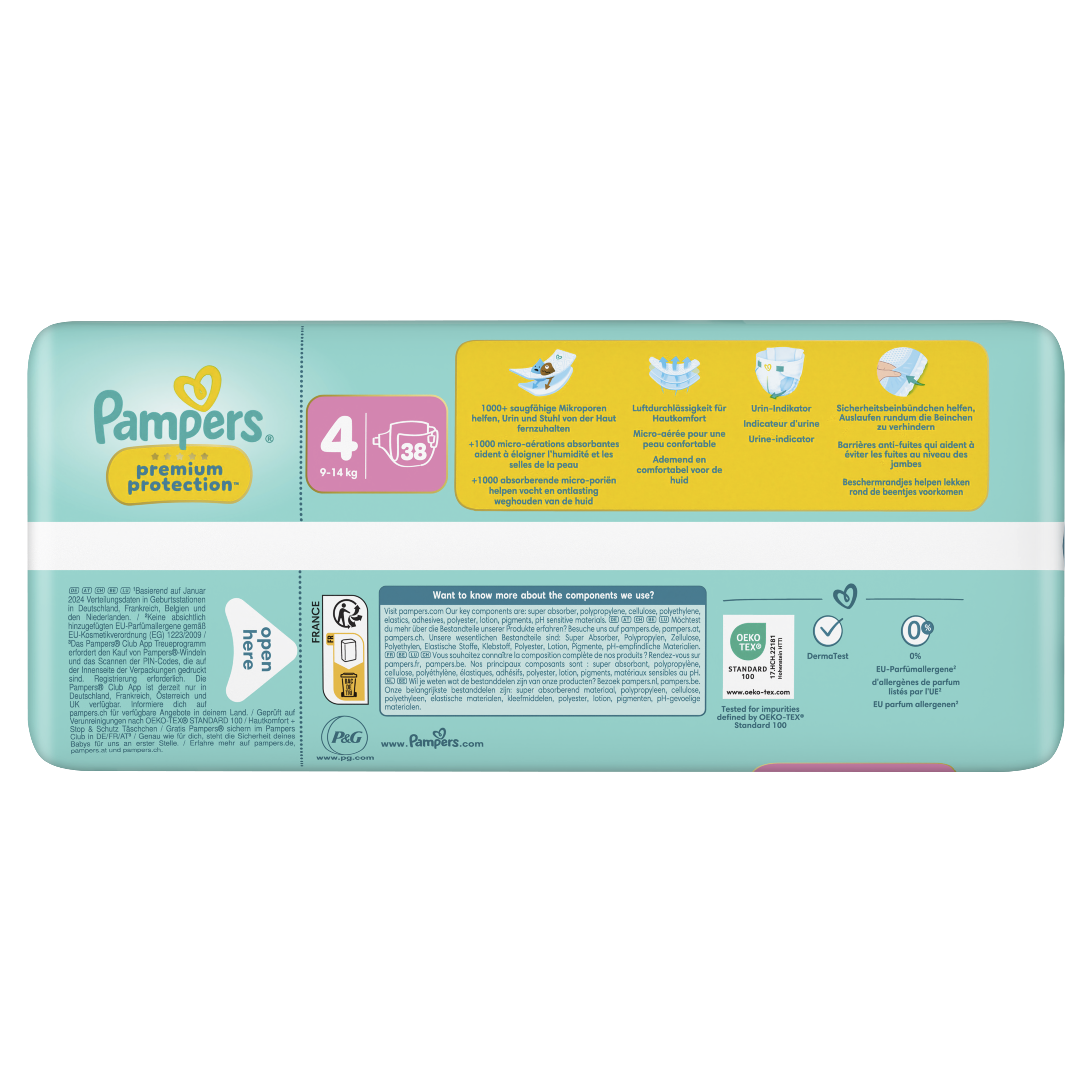 | Libellé | Pampers Premium Protection Taille 4 38 Couches 9kg-14kg |