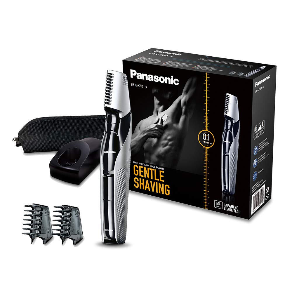 er-gk60-s503 - tondeuse corps étanche - La nouvelle tondeuse corps PANASONIC ER-GK60-S503 se présente sous une nouvelle forme totalement repensée et très facile à utiliser. Elle est particulièrement adaptée pour les zones difficiles à atteindre sans agresser la peau.Nouveau : la tondeuse est équipée de nouvelles lames aux bords arrondis et plus larges ce qui réduit considérablement la pression sur la peau. Aucun risque de coupure!La tondeuse ER-GK60 est dotée d?un peigne de 2 mm idéal pour les parties intimes ou sensibles. Tandis que les accessoires peigne de 3 et 6 mm permettent d?ajuster la hauteur selon l?envie pour le reste du corps.La nouvelle tondeuse GK60 préserve ainsi votre peau quelle que soit la zone traitée.