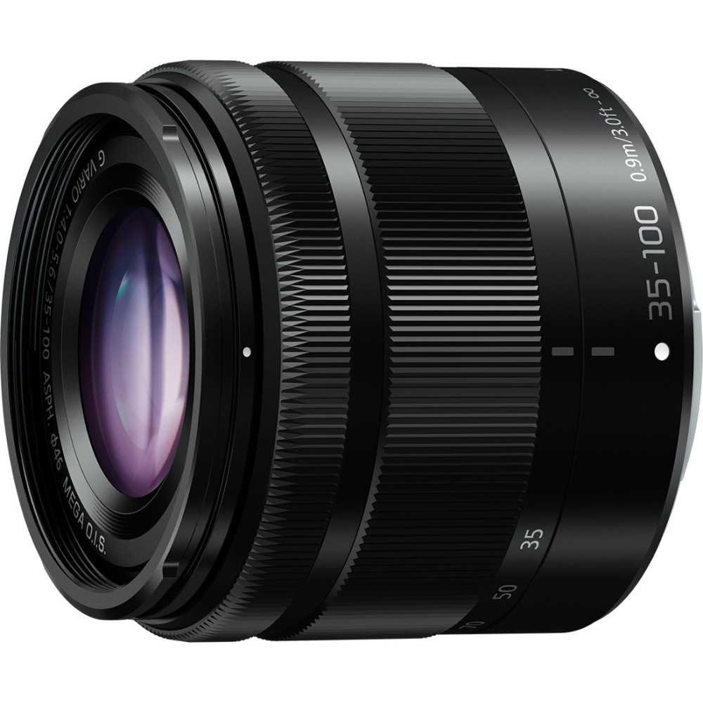 Panasonic LUMIX G Vario 35-100mm F4.0-F5.6 Asph. MEGA OIS. composant pour: SLR, Structure de l'objectif (éléments/groupes): 12/9, Type d'objectif: Téléobjectif zoom. Zoom maximal (PS): 0,11x. Couleur du produit: Noir. Diamètre: 5,55 cm, Taille de filtre: 4,6 cm, Longueur du produit: 50 mm. Profondeur: 50 mm