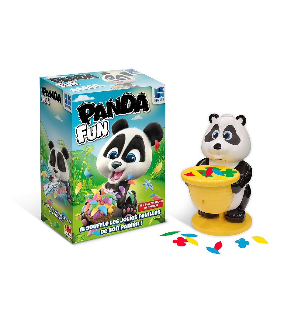PANDA’FUN souffle les jolies fleurs de son panier !Ce petit PANDA adore ramasser des fleurs et des feuilles dans son jardin mais il est embêté… elles le font souvent éternuer !En appuyant sur sa tête, PANDA’FUN se met à tourner sur ses pattes en musique. Quand il éternue, les feuilles de son panier s'envolent et tombent à ses pieds. Ramasse vite les fleurs de ta couleur pour les mettre dans son panier avant qu’il éternue à nouveau. Quand PANDA’FUN cesse de tourner au bout de 90 secondes, le joueur qui a mis toutes les feuilles de sa couleur dans le panier a gagné.
