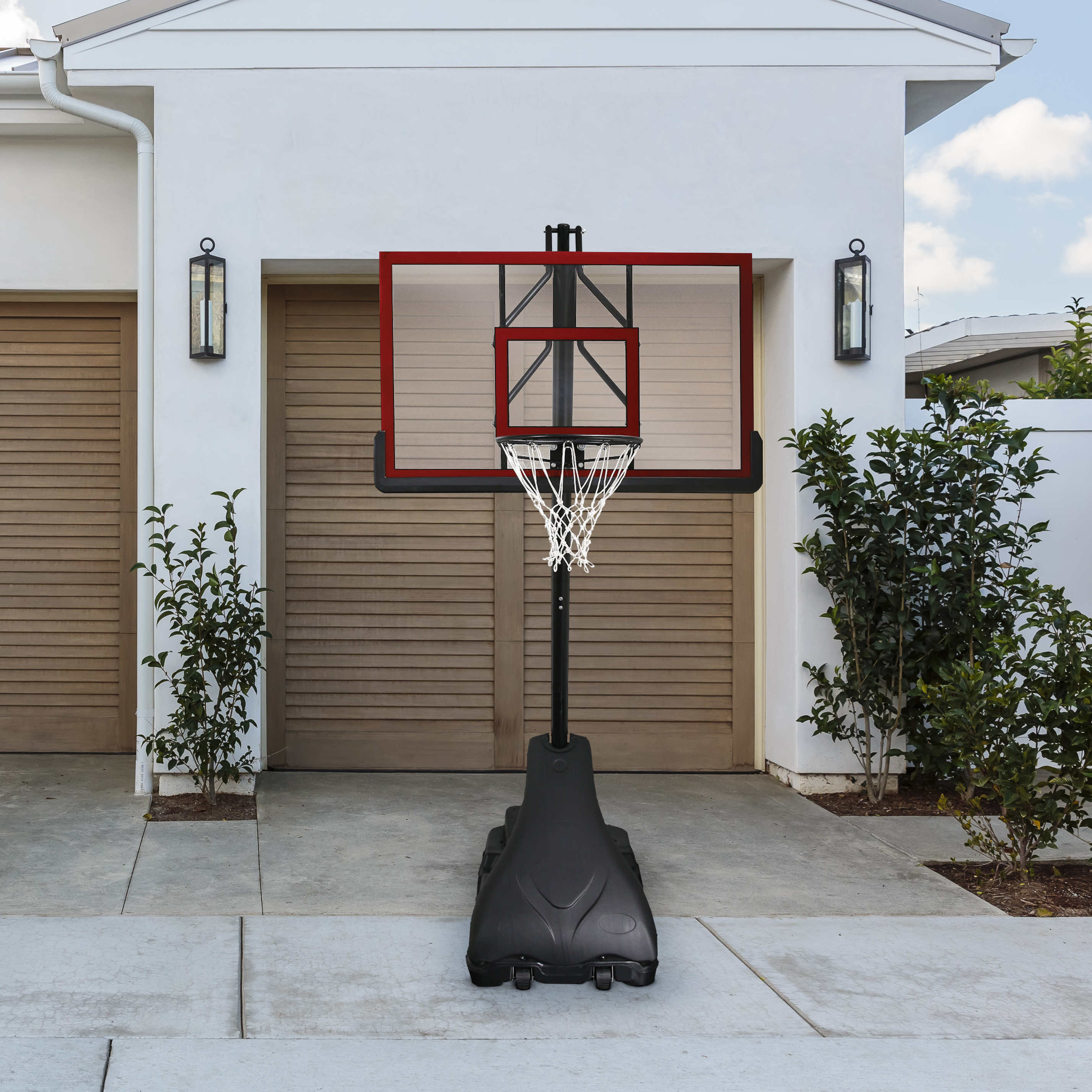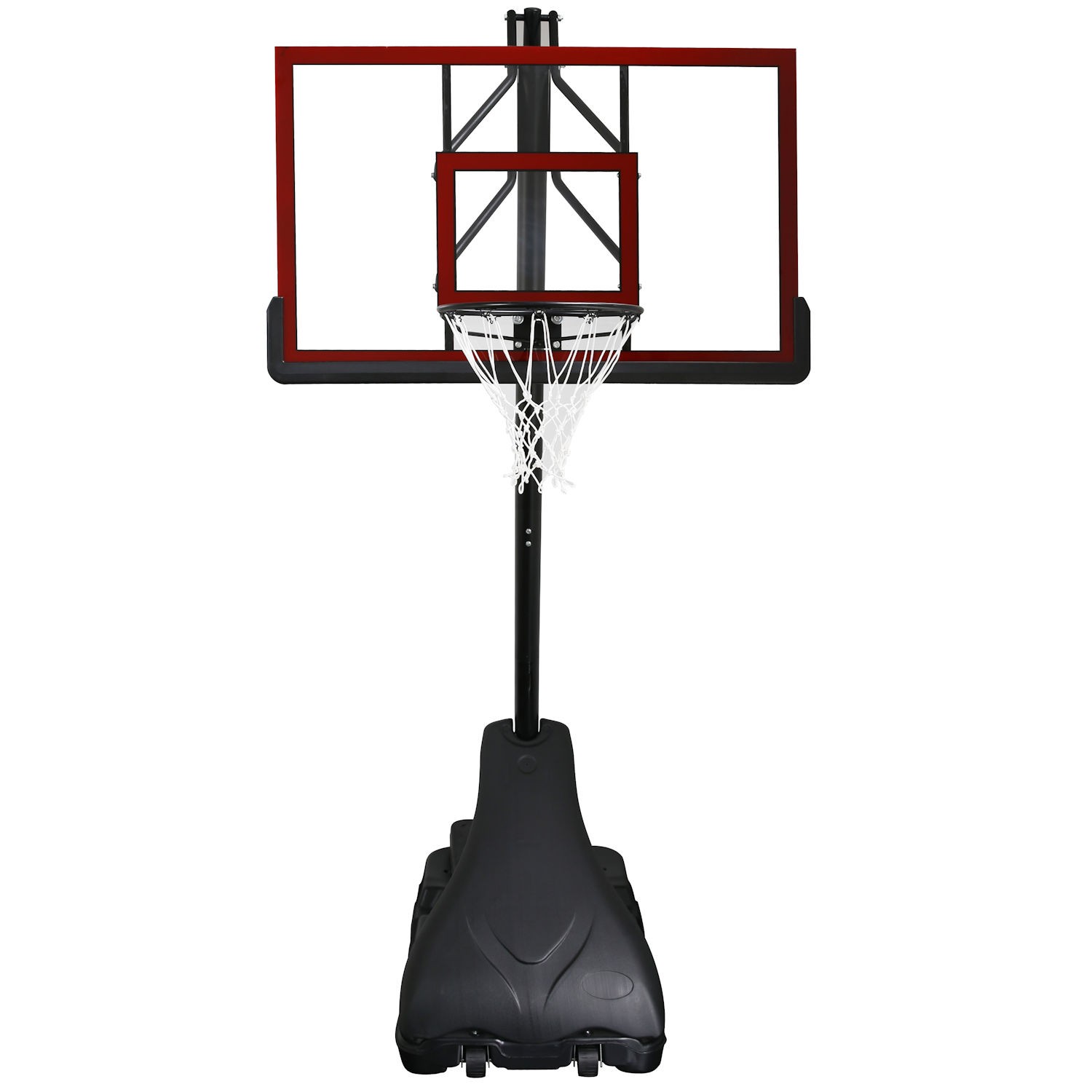 Panier de Basket Ball sur Pied Swager Platinium - The Shark Séries. Le Panier Swager 'Platinium' est un Panier de Basket sur Pied modèle Pro. Ce panier possède une finition Haut de gamme pour vous offrir une excellente qualité de jeu. Il comprend un système de réglage en hauteur avec une manivelle Deluxe pour un ajustement très rapide. Son arceau est équipé de deux ressorts pour vous donner de meilleures sensations de jeu. Au niveau esthétique, le Panneau XXL en Plexiglas lui donne une allure élégante. Ce Panier est pour adulte (hauteur réglementée 3,05m) pour adolescent ou junior (à partir de 14 ans).Sa hauteur est rapidement réglable de 2m30 à 3m05. CARACTERISTIQUES TECHNIQUES Le Panneau XXL: PVC Plexiglas Renforcé sur le dessous du Panneau Panneau Transparent avec le contour Rouge Légèrement incliné pour un confort de Jeu Pro Rectangulaire : Dimensions 144 x 89cm sur une épaisseur de 5cm Résistant aux UV - Longue durée de vie au niveau des couleurs Système de Fixation en 'H' pour une excellente fixation du Panneau L'Arceau : L’arceau du panier est en Acier Traité anti Rouille Diamètre de 45cm – 18 Pouces Fourni avec un filet de couleur blanc résistant aux intempéries et aux UV Le Socle : Socle à remplir avec de l'eau (+/-128 Litres) ou du sable fin Possède une protection inclinée sur le dessus Il mesure 135 x 86 x22cm Equipé de roulettes afin de faciliter la mobilité Le panneau est ajustable de 2m30 à 3m05 Le réglage se fait rapidement grâce à une poignée en manivelle Deluxe (Sytème ATT - Action Twist Adjustment), afin d'obtenir un panier pour junior, adolescent ou adulte Poids produit : 48.5 kg