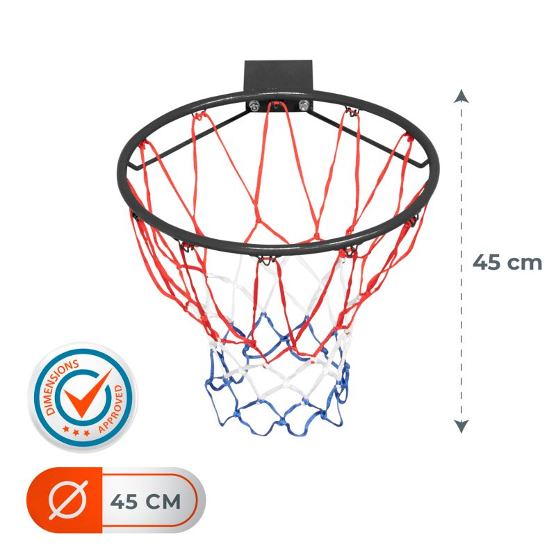 TAILLE OFFICIELLE : Le diamètre de l'arceau est de 45 cm qui est conforme au diamètre officiel homologué par les institutions de basket.
