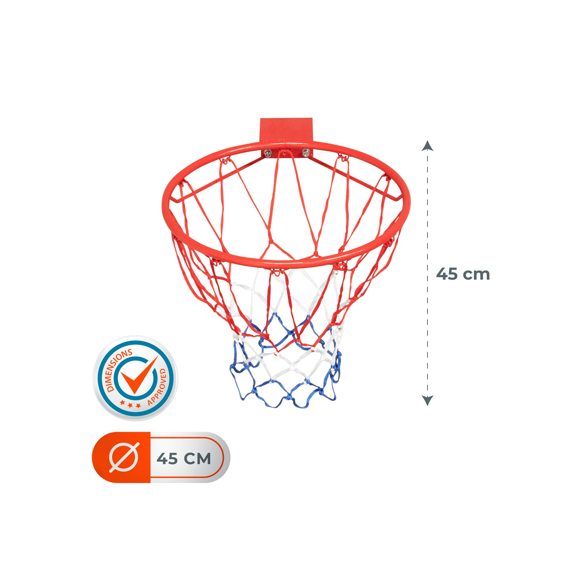 TAILLE OFFICIELLE : Le diamètre de l'arceau est de 45 cm qui est conforme au diamètre officiel homologué par les institutions de basket.