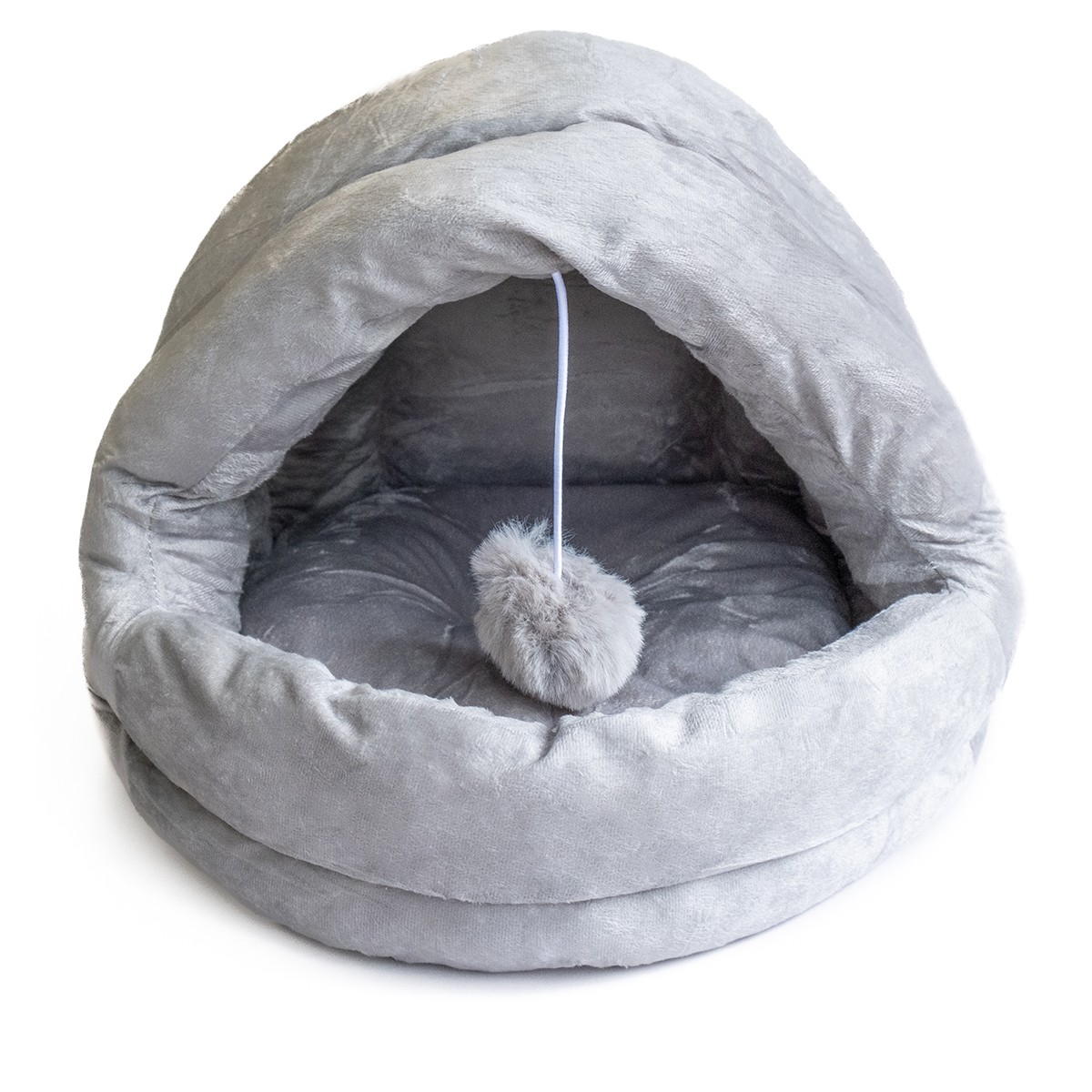 Ce lit pour chat intérieur est doté d'une balle suspendue, afin de divertir votre chat, encourageant le jeu et l'activité même pendant les moments de détente.