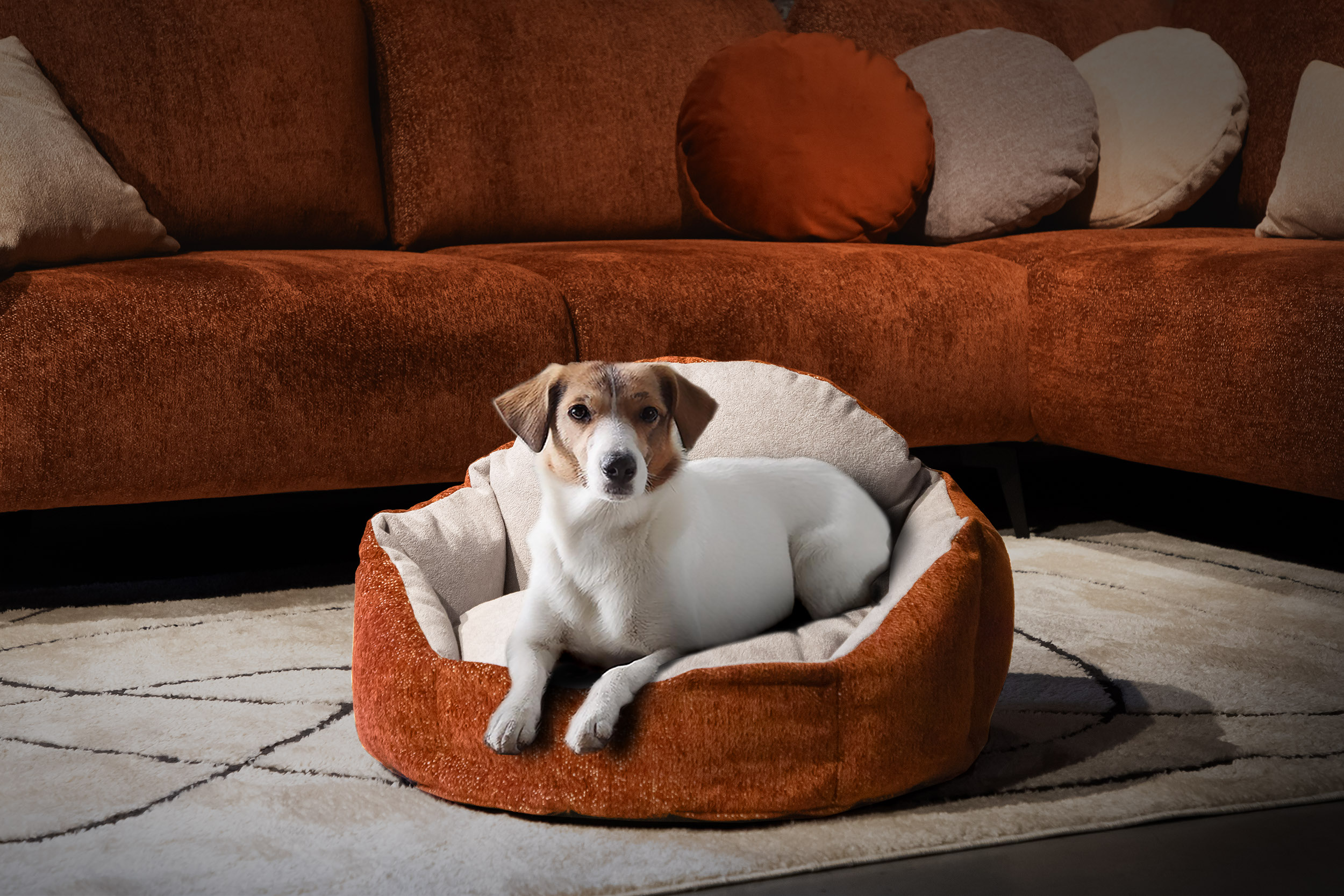 Panier pour chien et chat 70 x 55 cm tissu brique et gris clair - MICKEY
