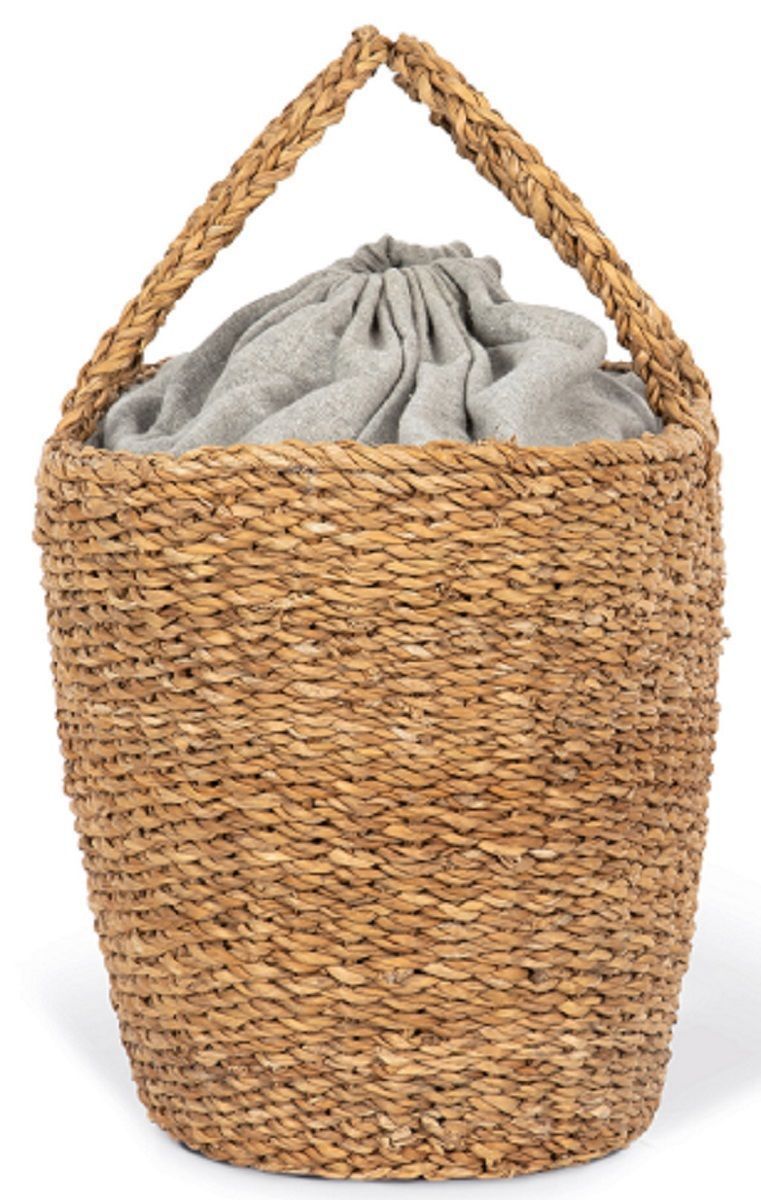 Panier tressé à la main à partir de fibre végétale d algue marine - Doublure intérieure tissée à la main à partir de fil de matières recyclées sur des métiers à tisser traditionnels qui donnent un aspect artisanal particulier et unique à la toile