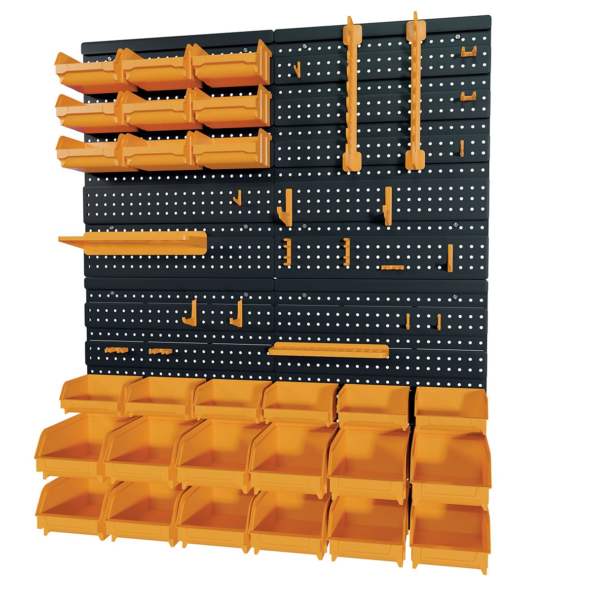 Panneau porte Outils 66 x 78 x 1.7cm 4 panneaux perforés 15 petits - 12 grands bacs 38 Crochets Etagère m