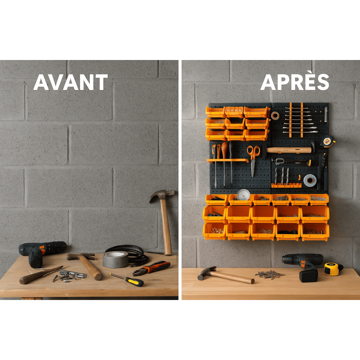 - Utilisation : Idéal pour le rangement mural dans un garage, atelier ou espace de bricolage