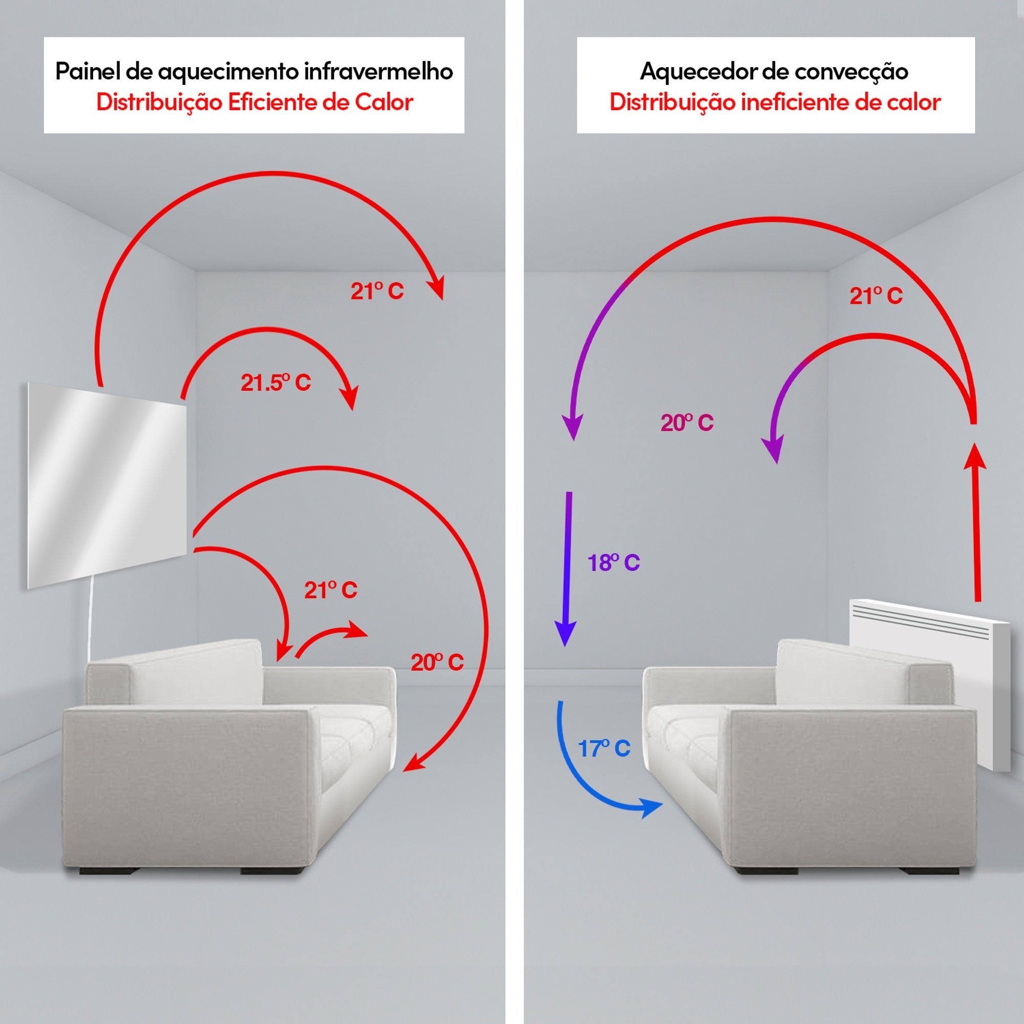 Tout comme le soleil, ces panneaux rayonnants utilisent des ondes infrarouges pour transférer efficacement l'énergie rayonnante aux objets solides devant eux. Ces panneaux sont également unique puisqu’ils sont hautement efficace et consomment le moins d'énergie possible.