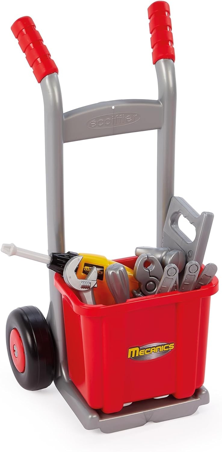| La boîte contient | Ensemble complet du petit bricoleur composé d’un diable et de sa caisse à outils, d’une perceuse, d’un casque et d’une ceinture avec ses outils inclus pour élaborer de grands travaux à la maison. Dès 18 mois. Origine France Garantie. |