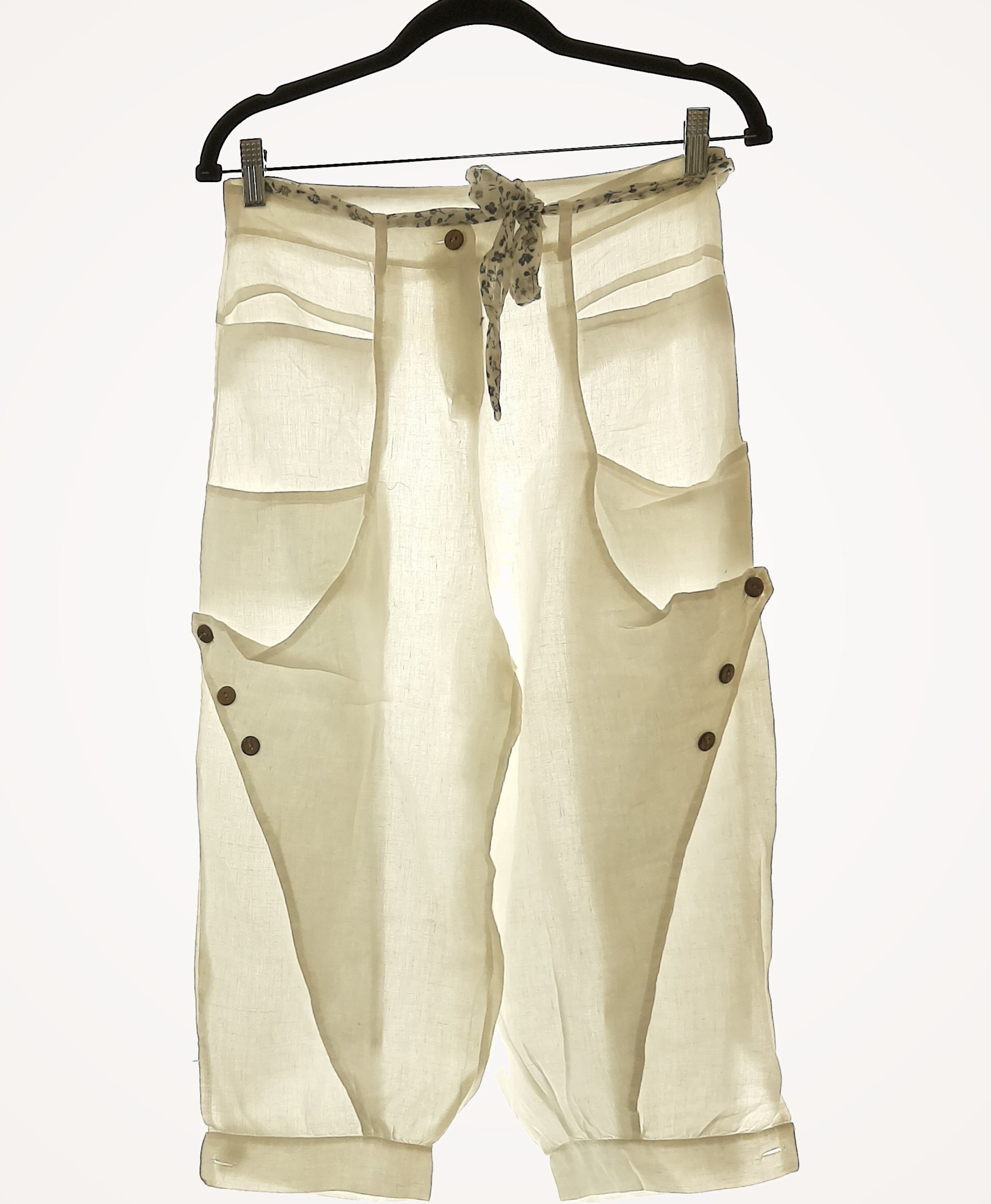 • Mesures : Longueur : 78 / Largeur :37 / Longueur taille / entrejambe : 34 / Libellé étiquette :36 Composition: 100% lin