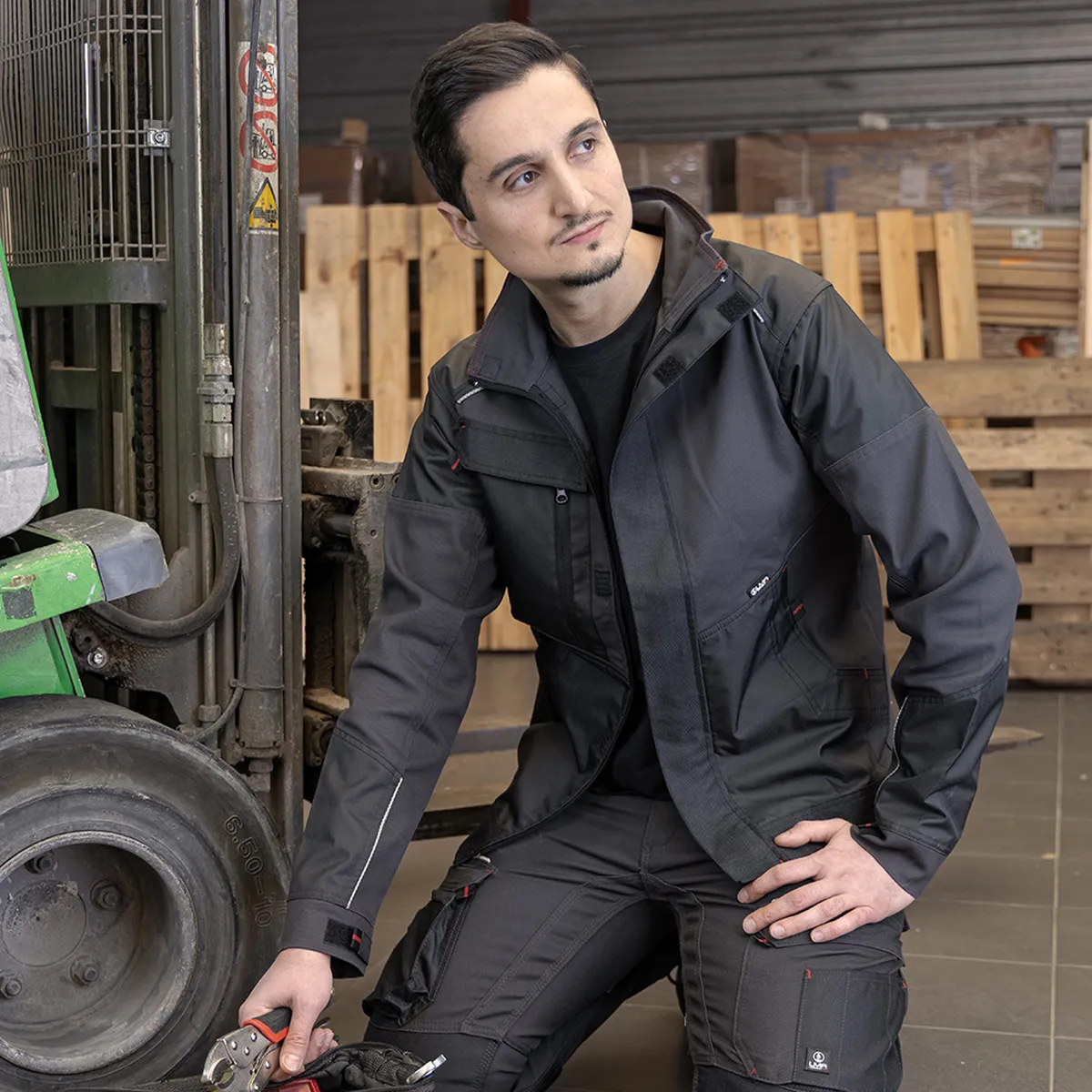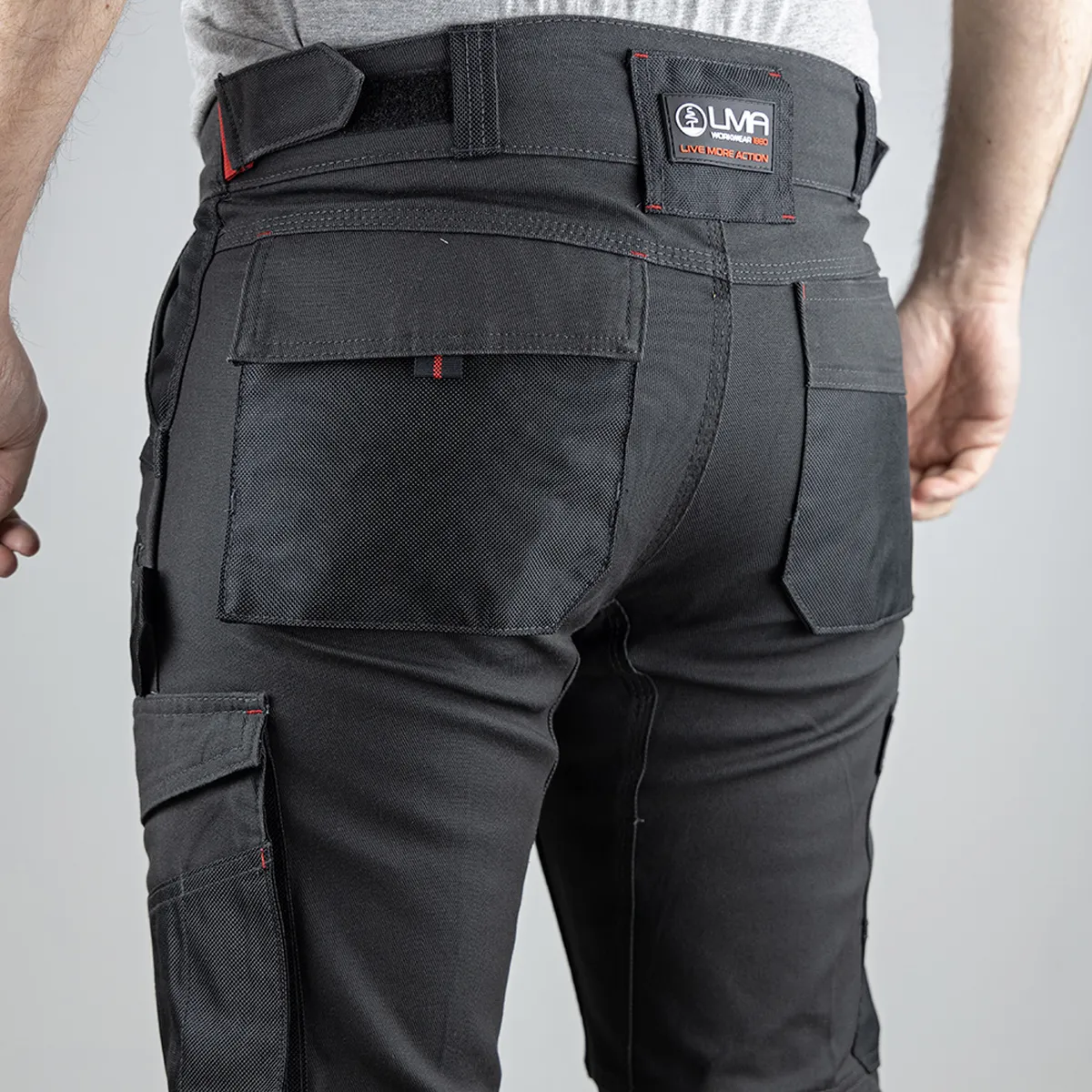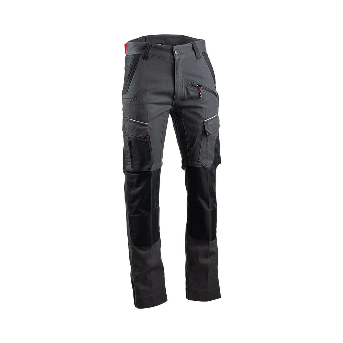 Le pantalon de travail COSMOS de la marque LMA Lebeurre allie confort, technicité et robustesse pour un usage intensif sur les chantiers. Conçu en tissu stretch bicolore, il garantit une excellente liberté de mouvement tout en offrant une grande résistance à l'usure. Sa ceinture réhaussée et ajustable par pattes élastiquées sur les côtés assure un maintien optimal, même en position accroupie. Doté de multiples poches fonctionnelles, le COSMOS propose notamment deux poches arrière semi-flottantes, une grande poche cuisse à soufflet avec rabat et poches rapportées, une poche mètre renforcée, ainsi qu'une poche zippée pratique sur l'avant. Les poches genouillères double position sont prévues pour accueillir des protections conformes à la norme EN 14404, apportant un confort supplémentaire aux professionnels travaillant à genoux. Les empiècements en Oxford 900D imperméable (100 % polyester - 245 g/m²) renforcent les zones exposées comme les genoux, le bas des jambes et l'entrejambe, garantissant une durabilité accrue. Les passepoils rétro-réfléchissants perforés améliorent la visibilité et la sécurité en environnement peu lumineux. Avec sa braguette zippée, ses triples surpiqûres et son design ergonomique, le pantalon COSMOS est une référence fiable pour les artisans, techniciens et professionnels du bâtiment. Disponible du 38 au 60 en coloris gris nuit/noir, il combine parfaitement résistance, confort et style.