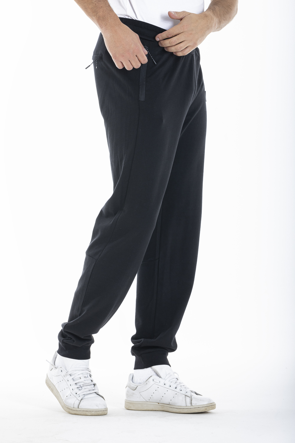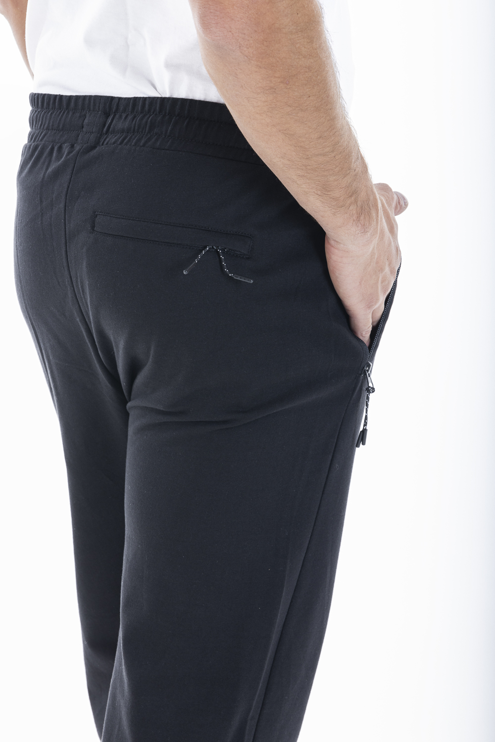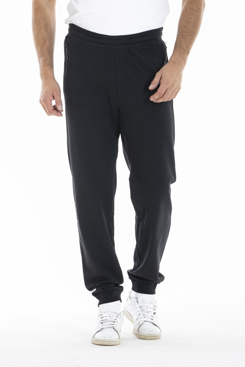 Pantalon de détente en molleton, zip inversé sur les poches avant, poche passepoilée à l'arrière, taille élastiquée avec cordon de serrage, finition côtelée aux chevilles, fourche légèrement basse avec empiècement pour plus de confort. 100% coton.Le mannequin porte une taille L.
