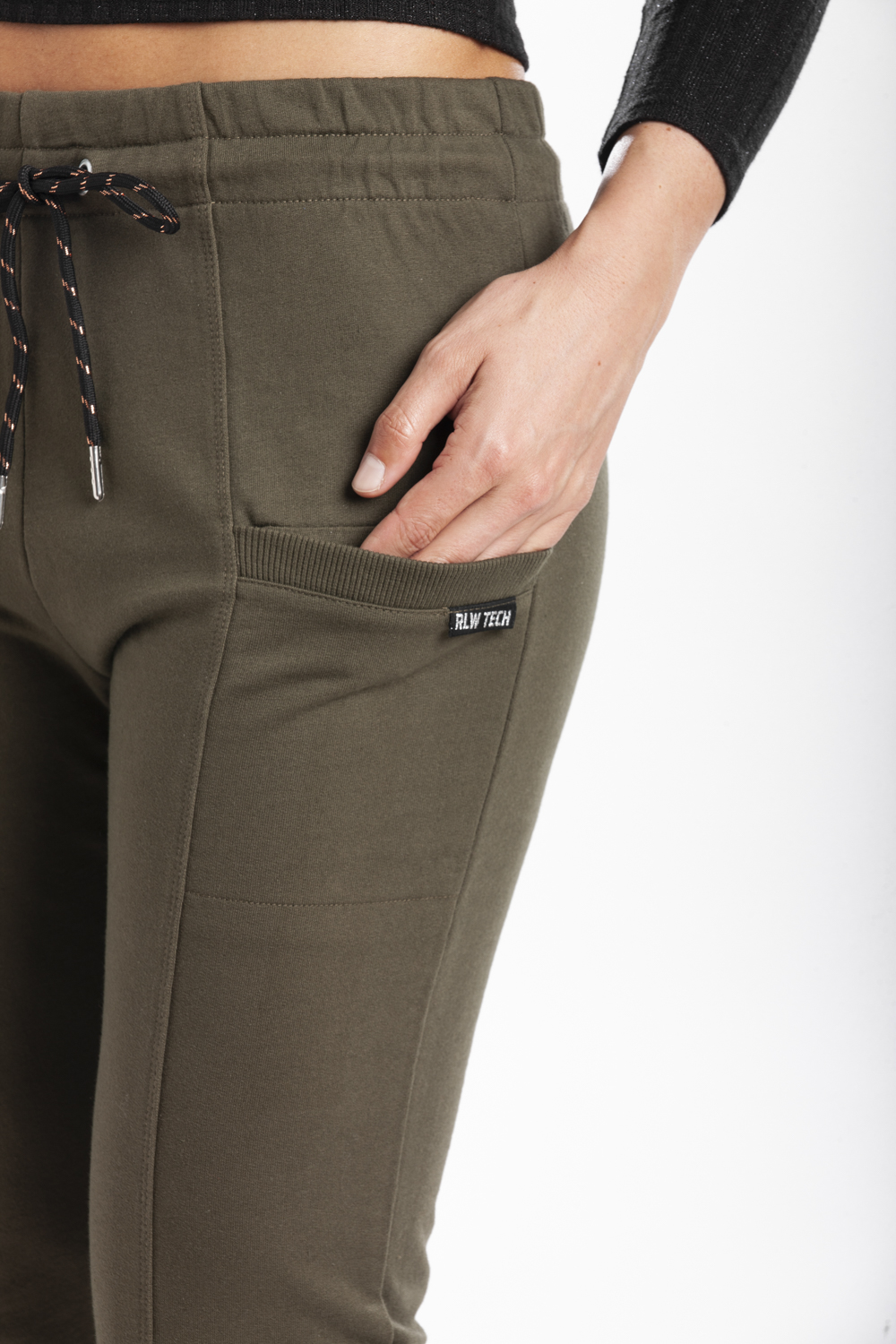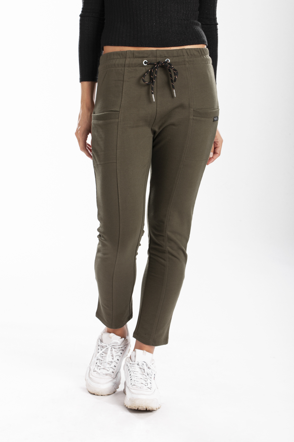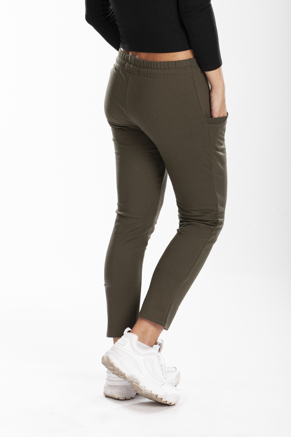 Pantalon de détente en molleton, coupe slim, cordon de serrage, taille élastiquée, fourche basse, surpiqûres sur les jambes, poches passepoilées sur le côté. 100% coton. Le mannequin porte une taille M.