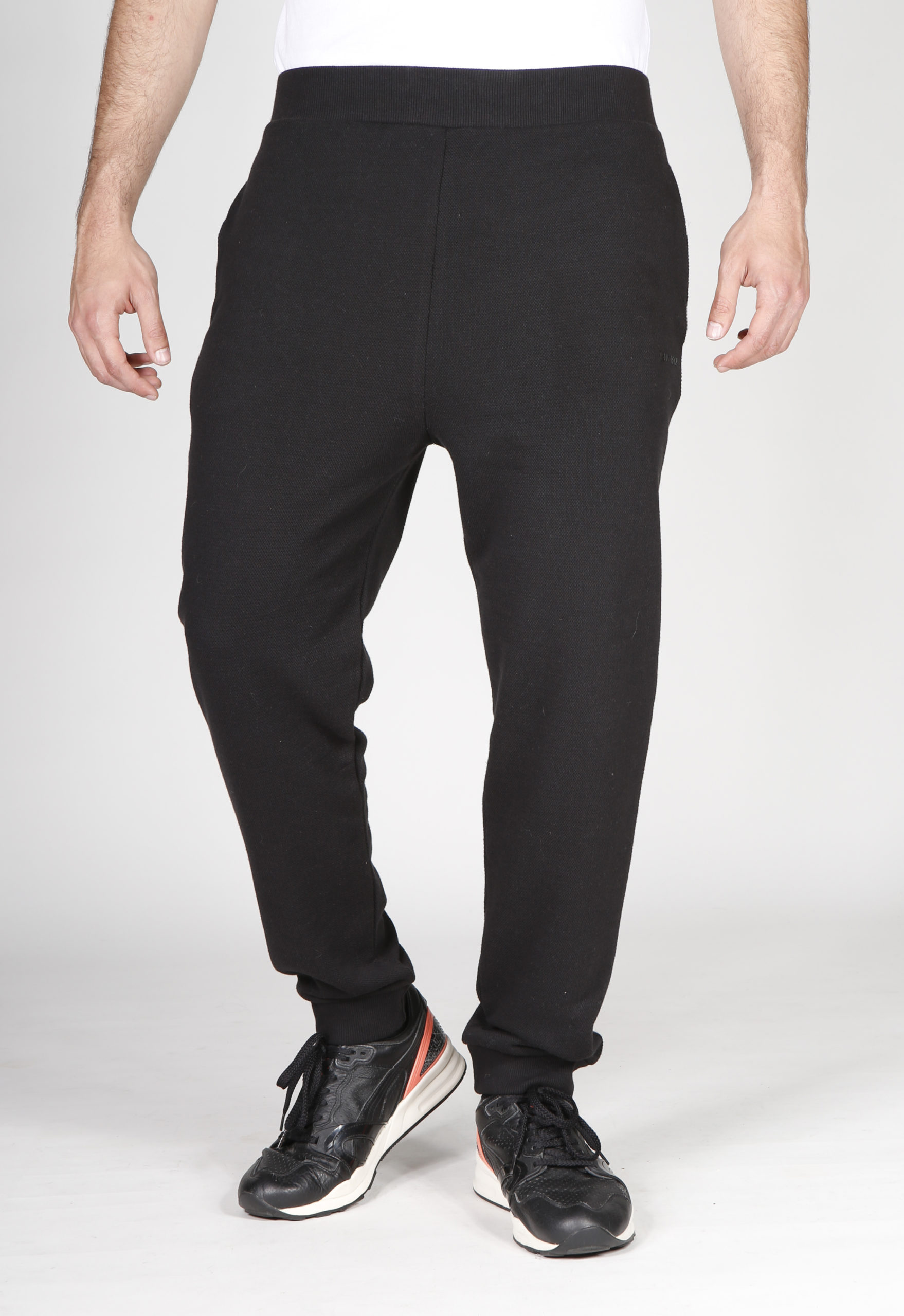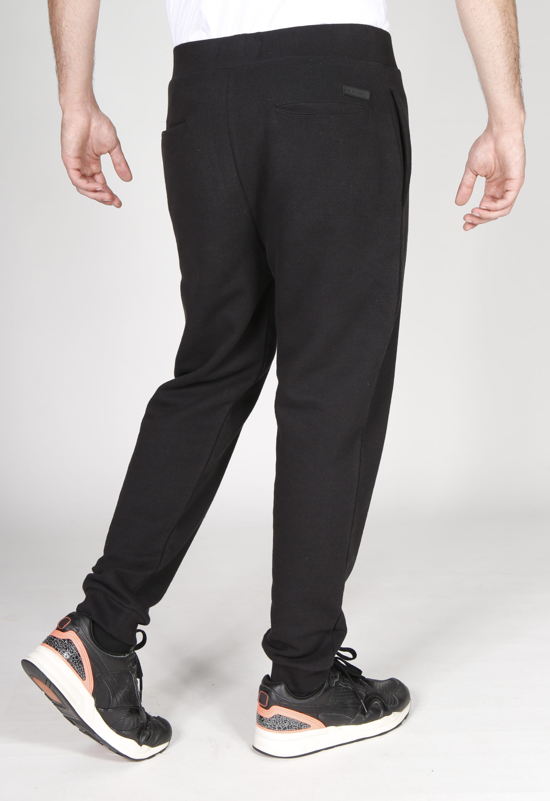 Pantalon de détente, coupe droite ajustée, coton piqué épais, poches italiennes à l'avant, 2 poches passepoilées à l'arrière, 90% coton 10% polyester. Le mannequin porte une taille L.