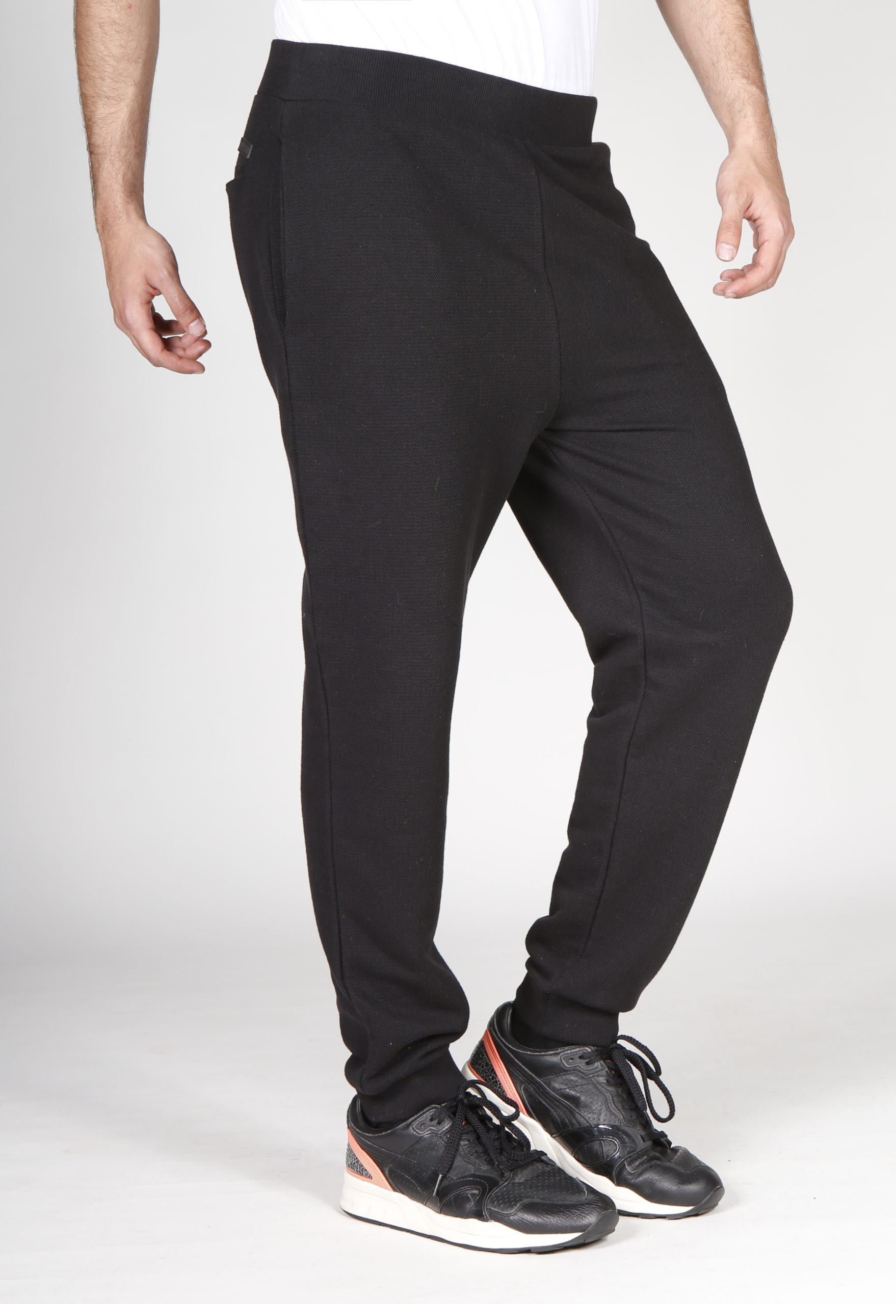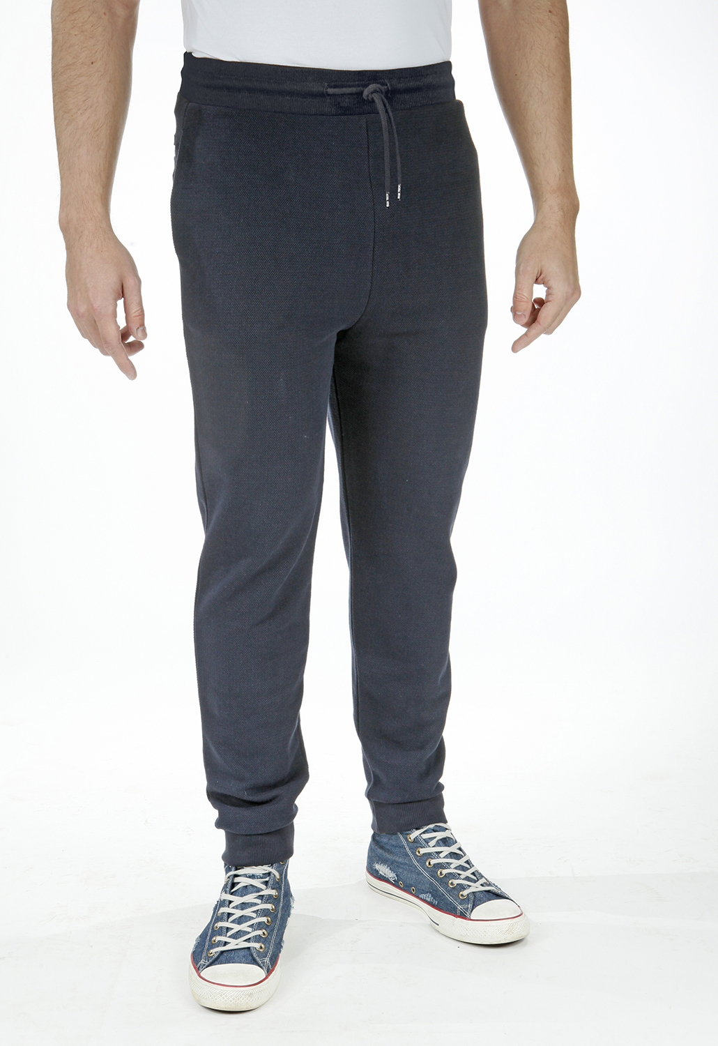 Pantalon de détente, coupe droite ajustée, coton piqué épais, poches italiennes à l'avant, 2 poches passepoilées à l'arrière, 90% coton 10% polyester. Le mannequin porte une taille L.