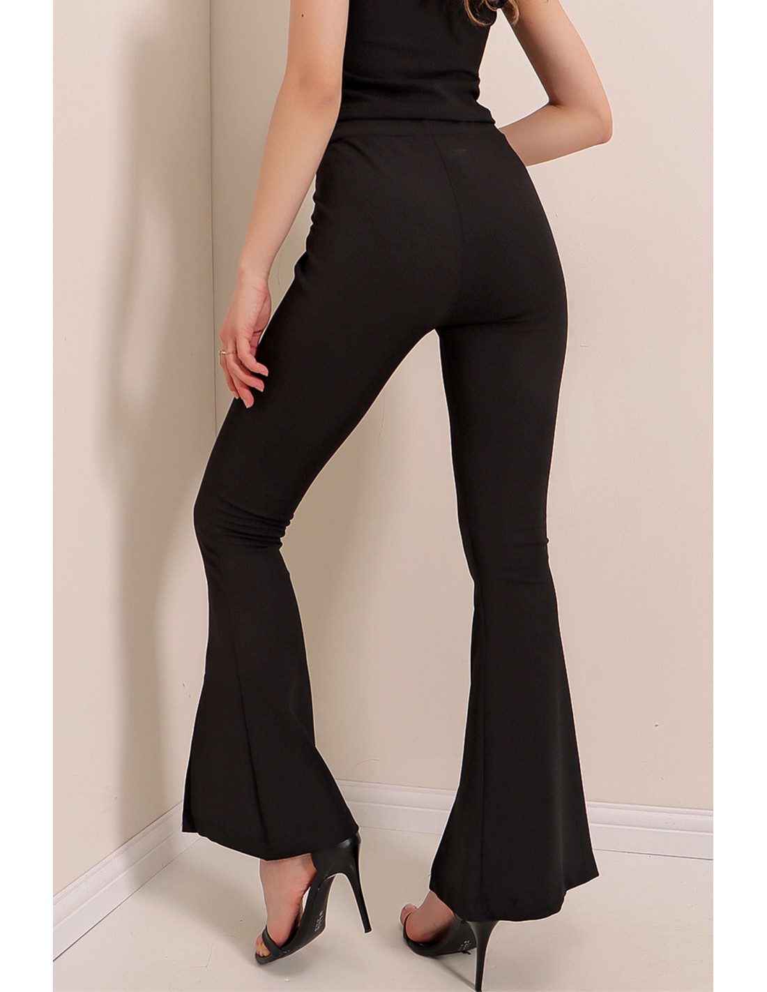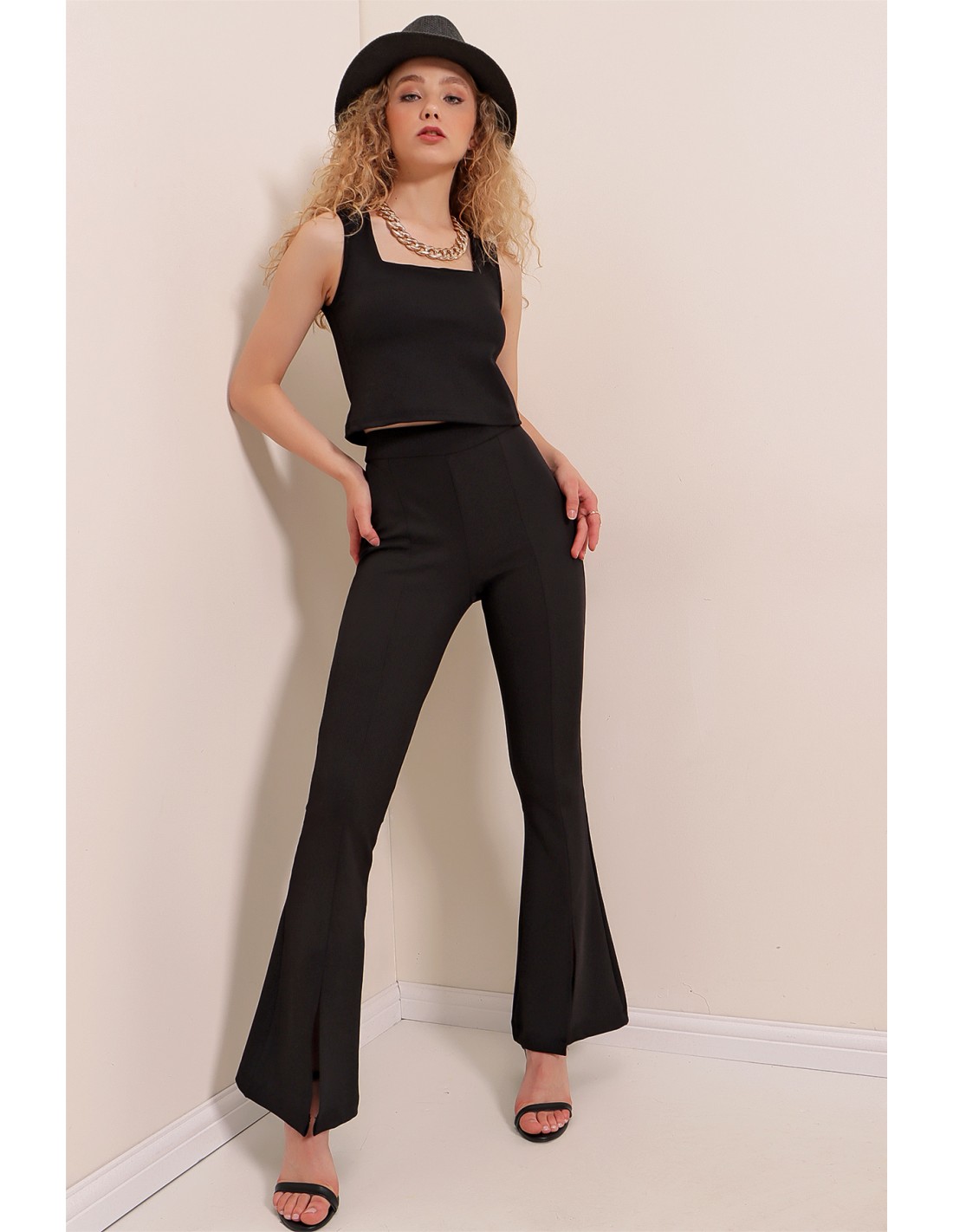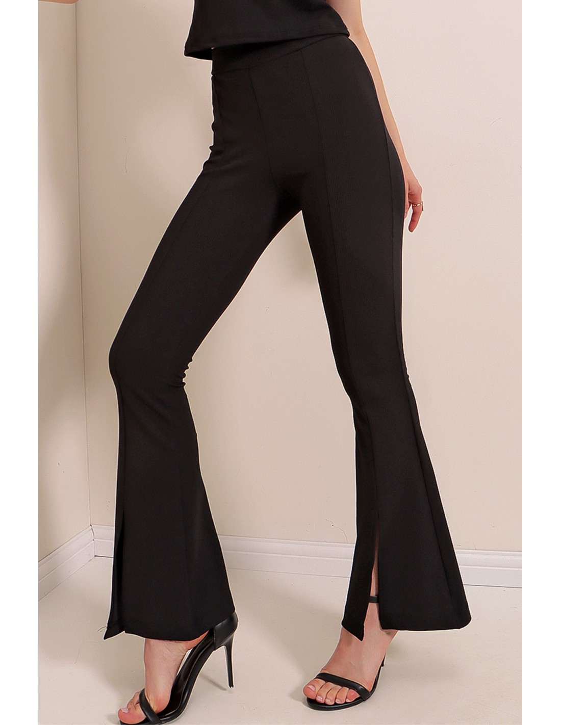 Pantalon Patte Evasée et Fendue, 95% Polyester 5% Lycra,