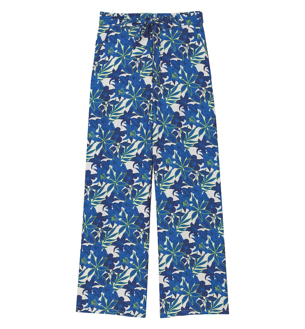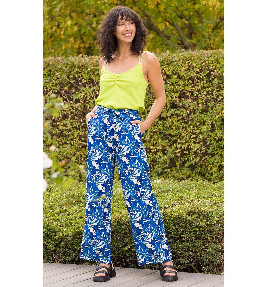 pantalon fluide à imprimé feuillage avec ceinture à nouer