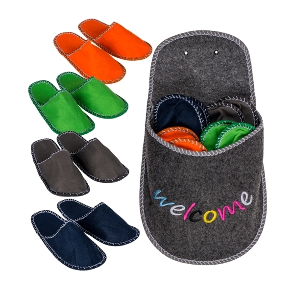 Chez vous, les invités sont rois ? Ils se sentiront comme chez eux en mettant à leur disposition ces chaussons. Cette pantoufle géante est un rangement parfait pour les 4 chaussons compris de différentes couleurs.* Contient 4 paires de chaussons * Pointure : 38 - 45 * Couleurs chaussons: noir, bleu marine, vert, orange Fonctions : chaussons pour invités Contenu : 1 grosse pantoufle murale, 4 paires de chaussons 38-45