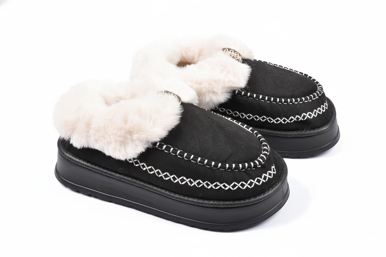 Des pantoufles femme pensées pour l’hiver, entre confort, chaleur et élégance. Ces charentaises ultra-légères sont dotées d’un intérieur entièrement doublé en Sherpa et d’une semelle à mémoire de forme qui épouse parfaitement la morphologie du pied. Leur dessus en suédine douce et leurs surpiqûres apparentes offrent une finition de qualité, tandis que le revers fourrure souligne l’aspect cocooning de la chaussure. La semelle extérieure crantée garantit une excellente adhérence sur tous types de sols, même froids ou lisses, tout en conservant une souplesse naturelle. Un modèle idéal pour affronter les journées fraîches tout en profitant du confort d’un chausson chaud et élégant. ✔️ Points forts : Intérieur Sherpa + mousse mémoire de forme Ultra-légère et antidérapante Suédine effet velours, surpiqûres haut de gamme Revers fourrure chaud et raffiné Parfaite pour l’hiver et les ambiances cocooning