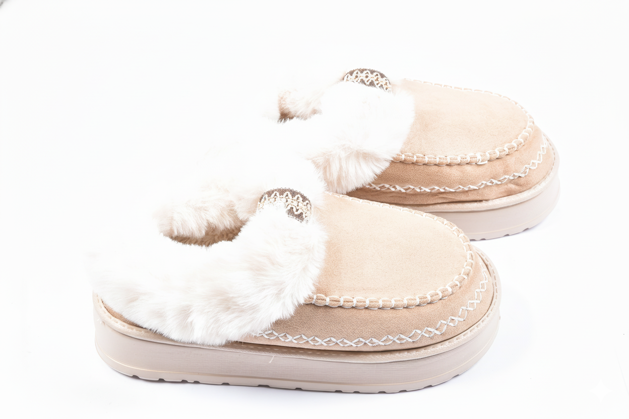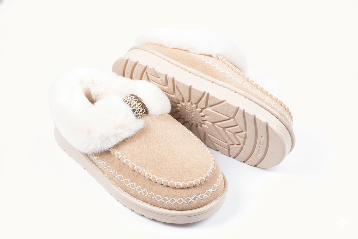 Des pantoufles femme pensées pour l’hiver, entre confort, chaleur et élégance. Ces charentaises ultra-légères sont dotées d’un intérieur entièrement doublé en Sherpa et d’une semelle à mémoire de forme qui épouse parfaitement la morphologie du pied. Leur dessus en suédine douce et leurs surpiqûres apparentes offrent une finition de qualité, tandis que le revers fourrure souligne l’aspect cocooning de la chaussure. La semelle extérieure crantée garantit une excellente adhérence sur tous types de sols, même froids ou lisses, tout en conservant une souplesse naturelle. Un modèle idéal pour affronter les journées fraîches tout en profitant du confort d’un chausson chaud et élégant. ✔️ Points forts : Intérieur Sherpa + mousse mémoire de forme Ultra-légère et antidérapante Suédine effet velours, surpiqûres haut de gamme Revers fourrure chaud et raffiné Parfaite pour l’hiver et les ambiances cocooning