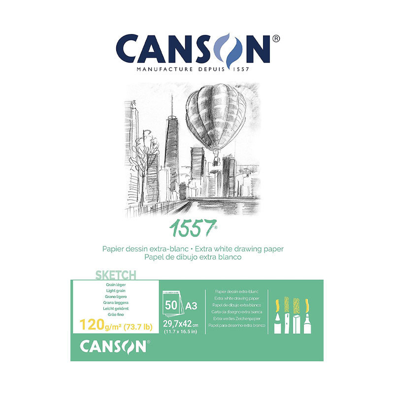 Papier à dessin extra-blanc - A3 (29,7x42cm) - 120g/m2 - bloc de 50 pages - 1557 SKETCH Canson