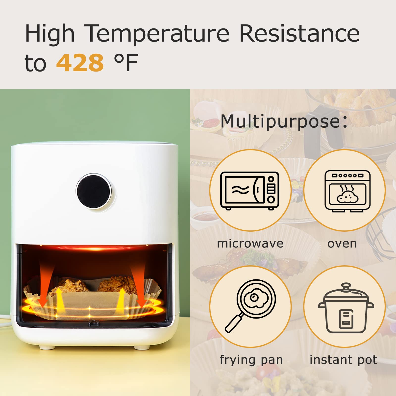 Protège la friteuse : Ce papier sulfurisé possède un bord surélevé qui protège également le côté de la friteuse. Le papier protecteur garde votre friteuse à air propre et fraîche et réduit le besoin de nettoyage après utilisation. Peut également être utilisé au four, au micro-ondes et à la poêle.