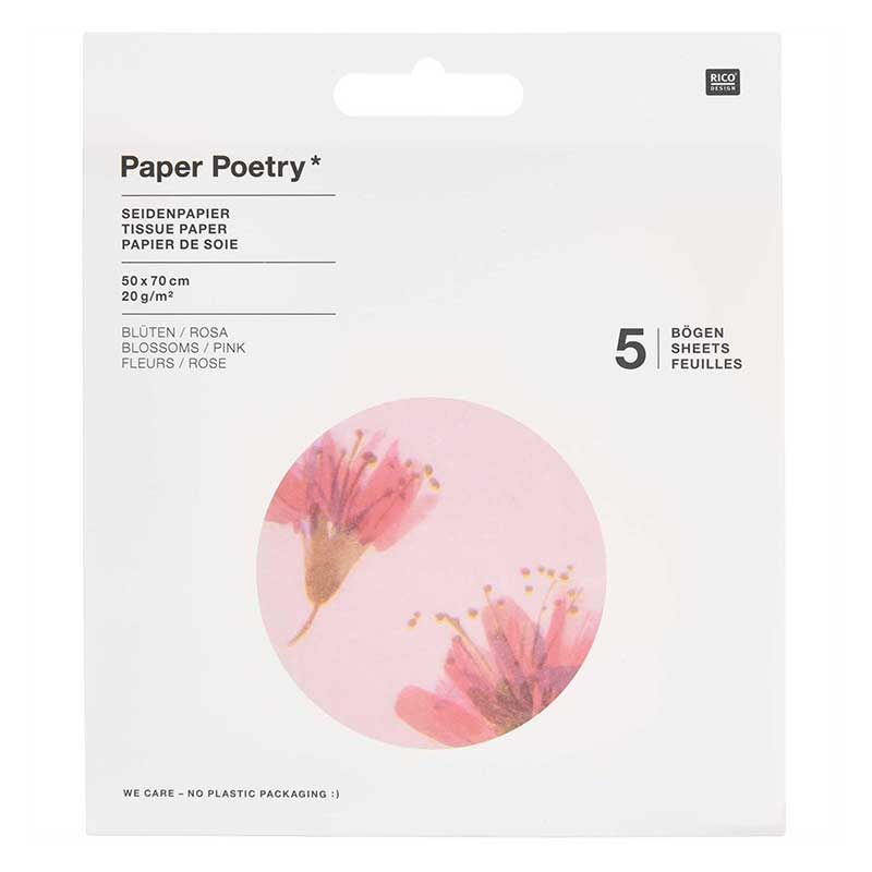 Papier de soie 5 feuilles 50 x 70 cm - Fleurs de cerisier rose