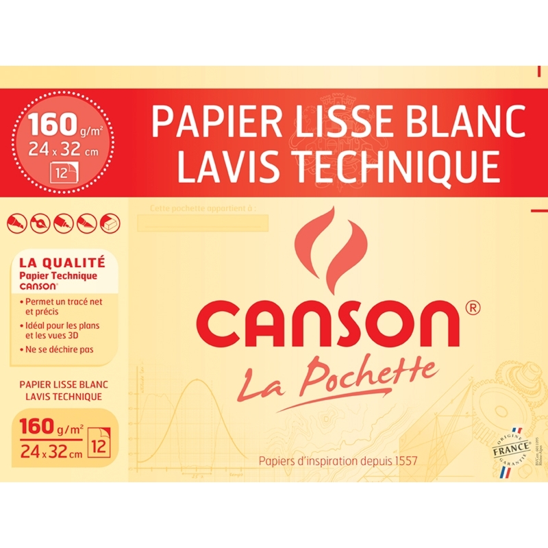 | Libellé | Papier dessin technique, 240 x 320 mm, 160 g/m2, 12 feuilles |
